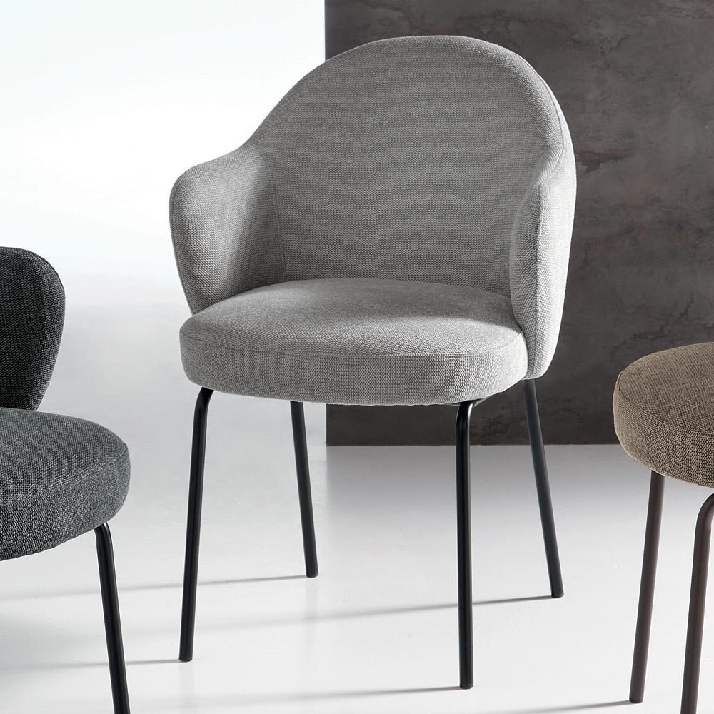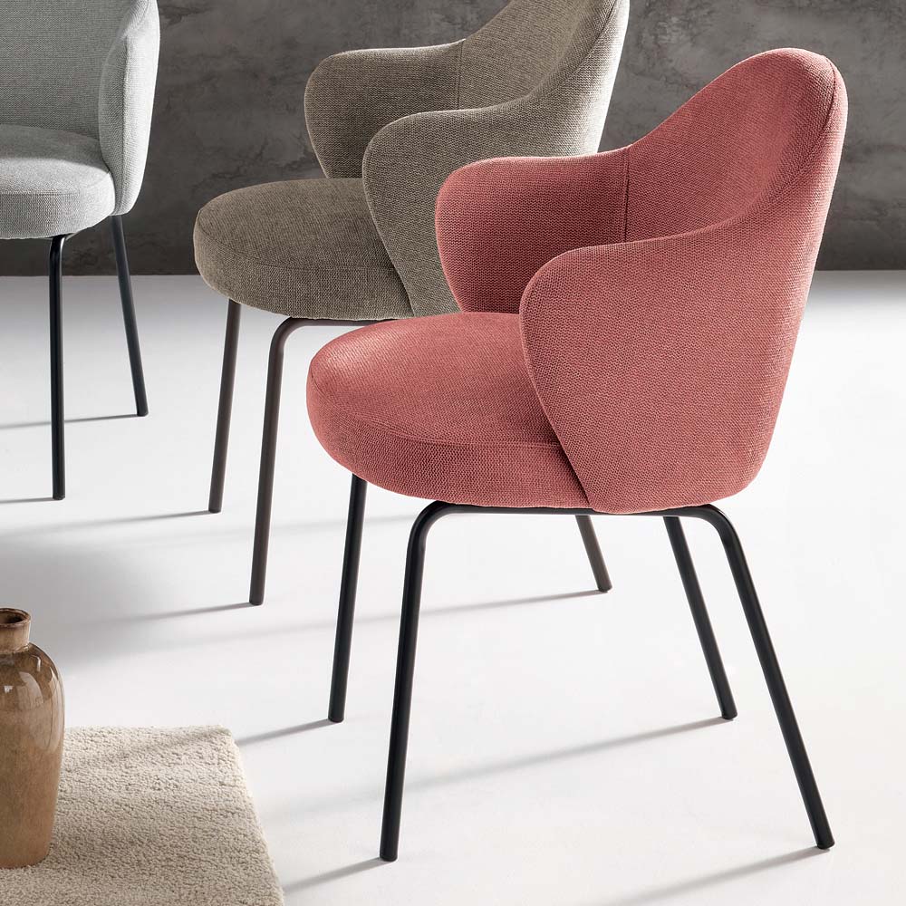 La silla cuenta con un respaldo curvo y continuo que se abre suavemente en dos reposabrazos redondeados , ofreciendo una sensación acogedora tanto visual como funcionalmente. El asiento con muelles garantiza una gran comodidad incluso durante un uso prolongado.