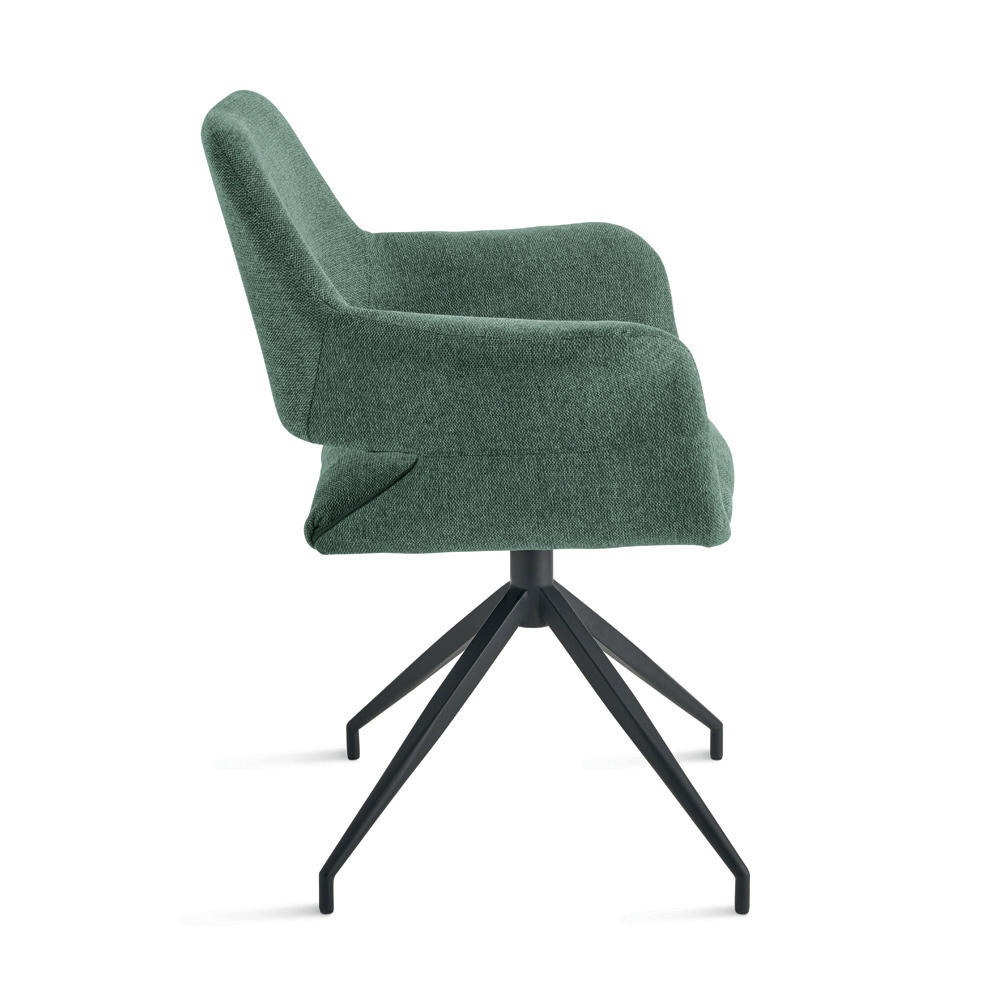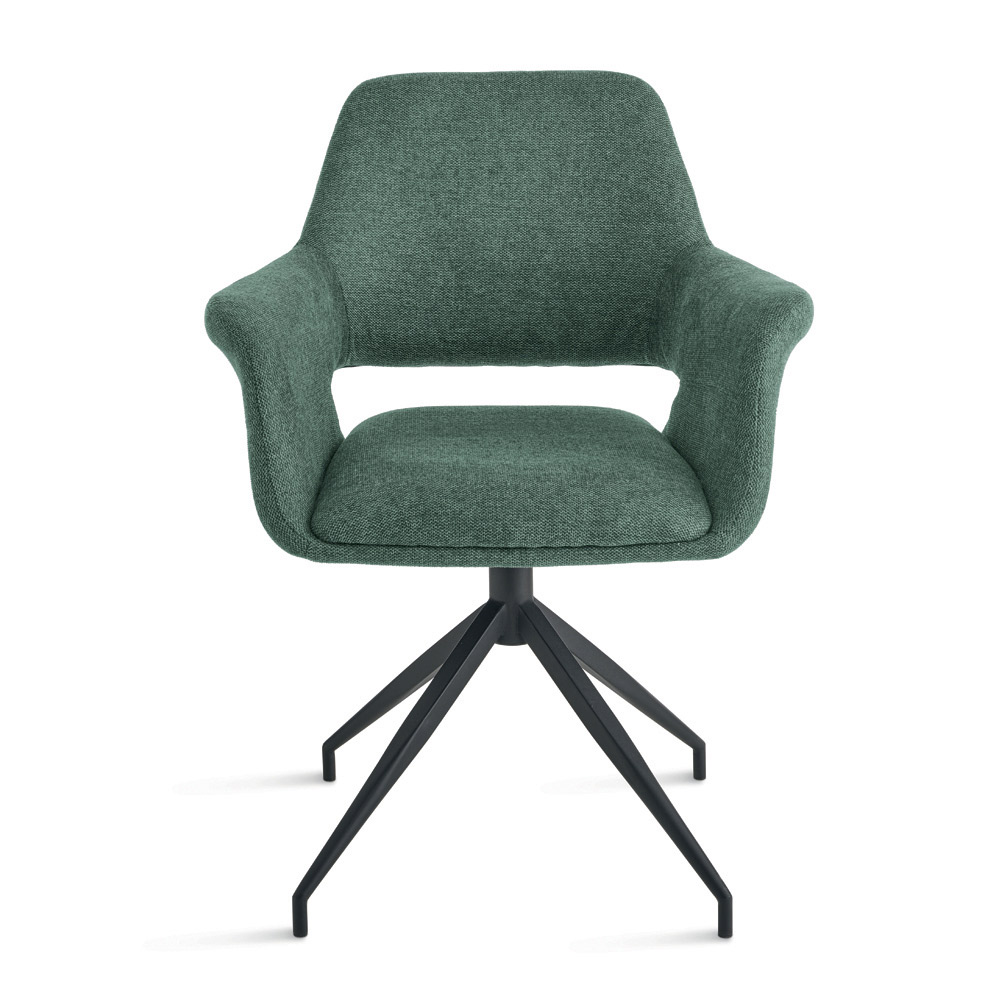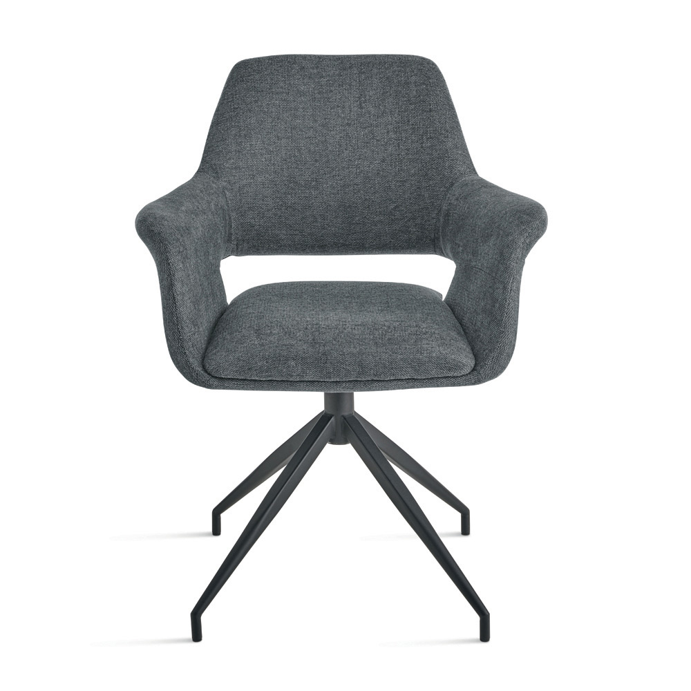 Un elegante conjunto de dos sillones giratorios acolchados de diseño moderno, ideales para amueblar con estilo tu comedor , sala de estar o espacio social. El tapizado de tela realza el asiento con un aspecto refinado y acogedor, perfecto para ambientes contemporáneos.