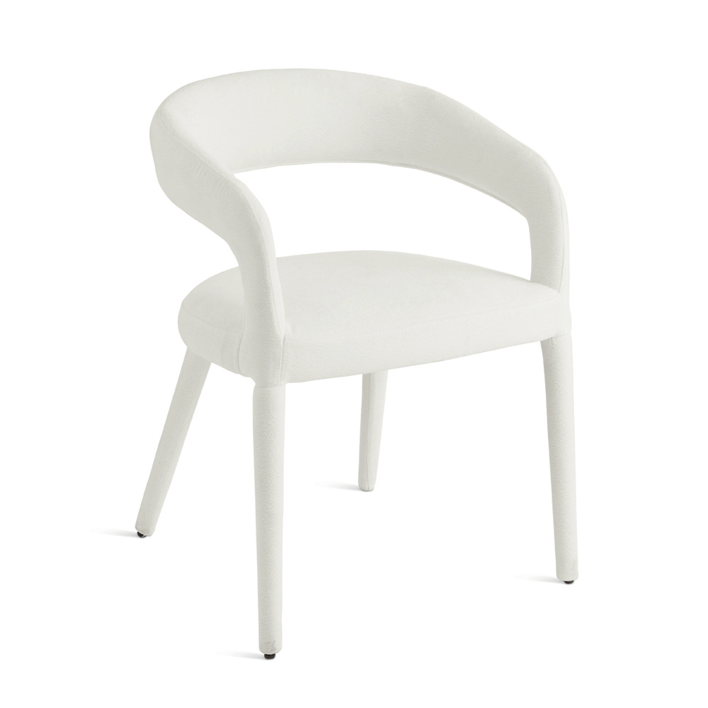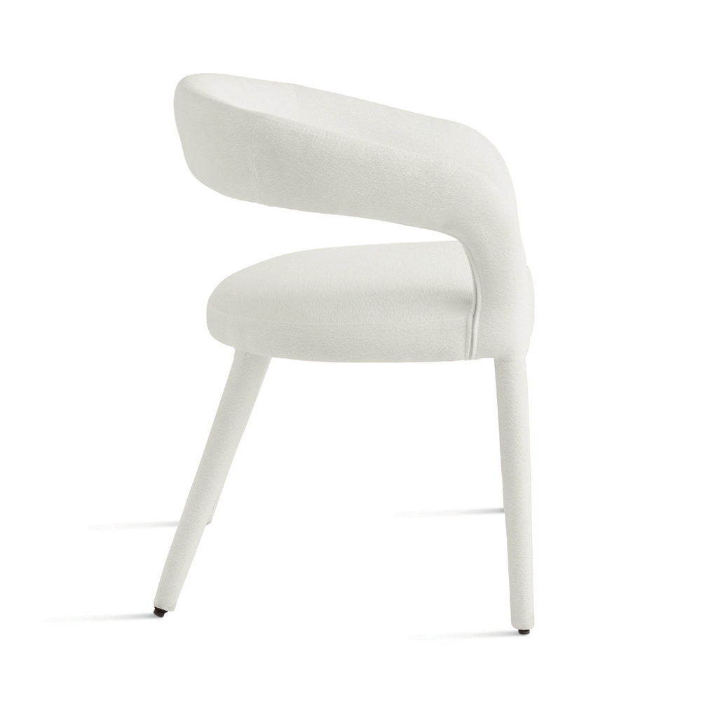Sus líneas depuradas y proporciones equilibradas hacen de esta silla una pieza discreta pero elegante, que se integra fácilmente en diversos estilos de decoración. El tapizado sin costuras aporta coherencia estética al diseño, realzando su aspecto moderno y minimalista.
