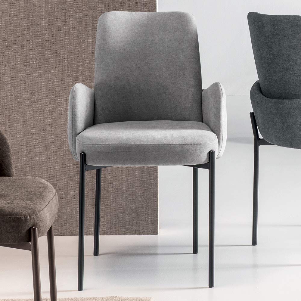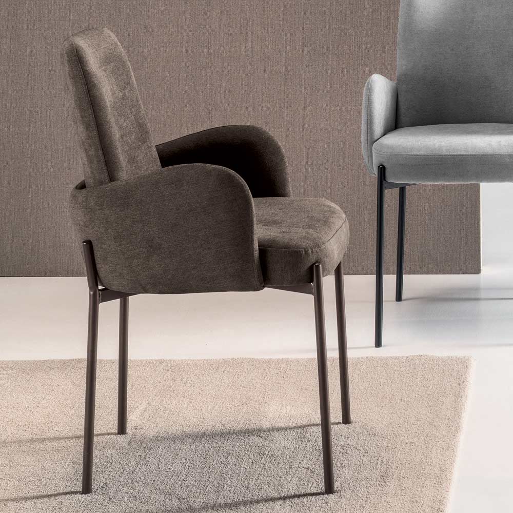 La fina pero robusta estructura metálica pintada acoge el asiento como una pieza preciosa integrada en la estructura, realzando su perfil y aportando ligereza visual al diseño general. Disponible en diversos acabados y colores para adaptarse fácilmente a diferentes estilos de decoración.