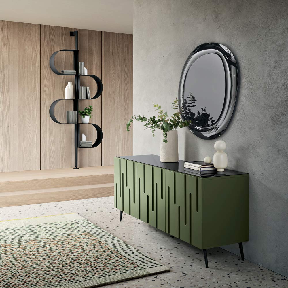 Un elegante aparador de diseño, fabricado en Italia , ideal para amueblar con estilo tu salón o comedor . Su diseño contemporáneo destaca por su marcado carácter escultórico, transformando el mueble de almacenamiento en un elemento decorativo de gran impacto visual.