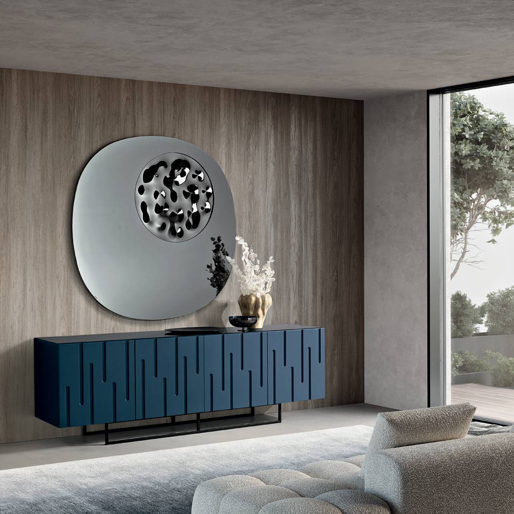 Un elegante aparador de diseño, fabricado en Italia , ideal para amueblar con estilo tu salón o comedor . Su diseño contemporáneo destaca por su marcado carácter escultórico, transformando el mueble de almacenamiento en un elemento decorativo de gran impacto visual.