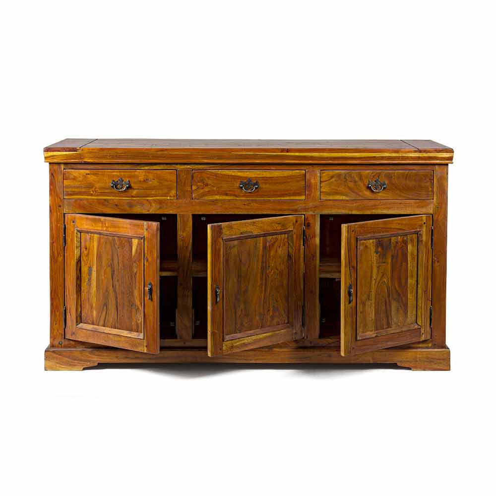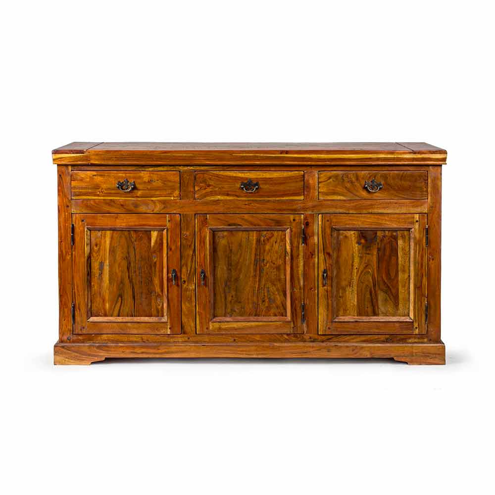 Aparador de diseño clásico en acabado rústico de madera maciza de acacia - Malaya
