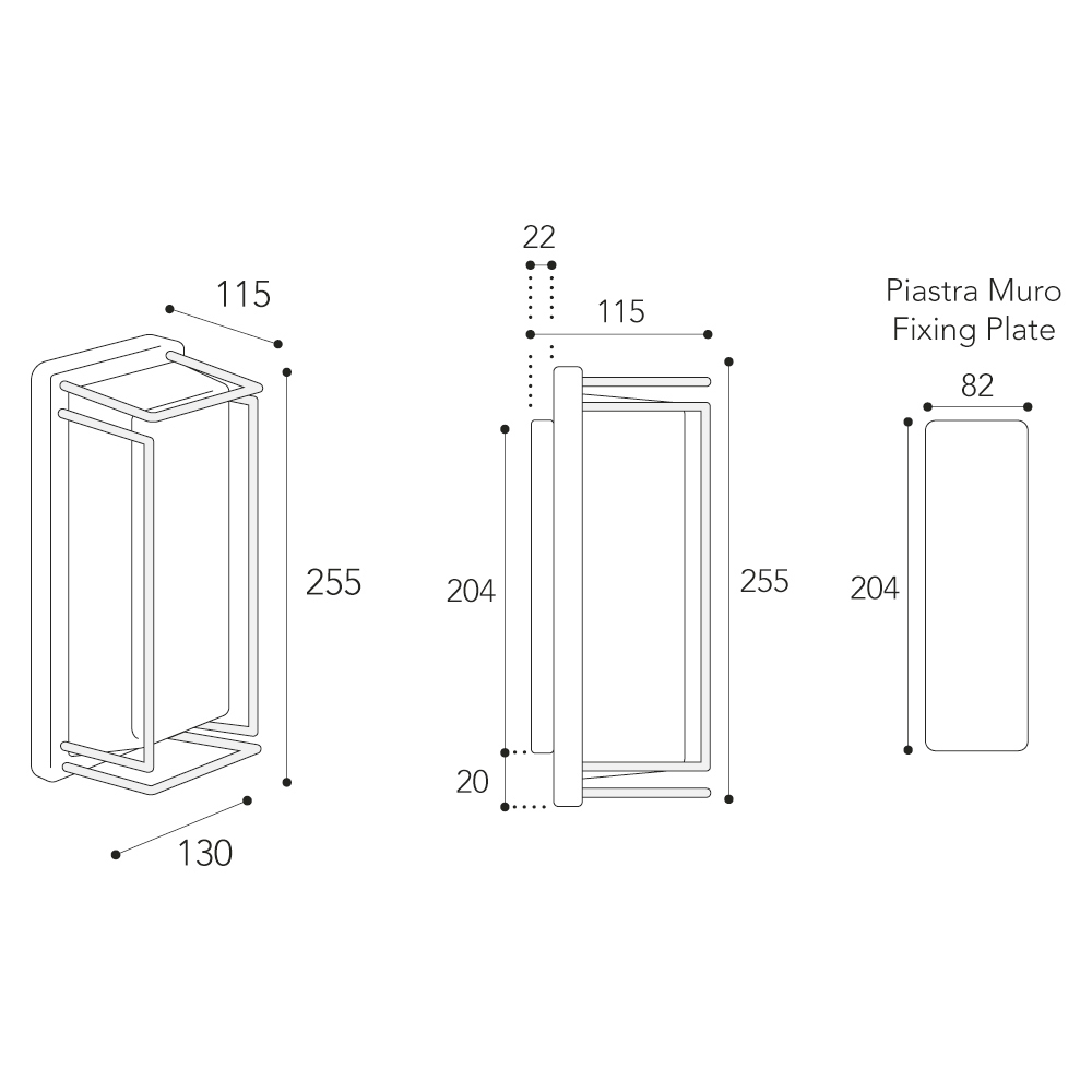 • Placa de pared: 20,4 × 8,2 cm