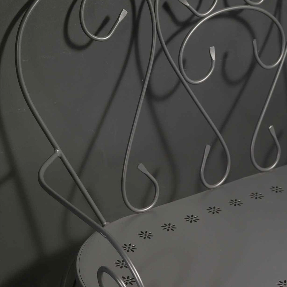 El banco está hecho de metal resistente a la intemperie , ideal para disfrutar de momentos de relajación en el jardín, en la terraza o en un rincón acogedor de su patio. La atención al detalle y el acabado hacen que este banco sea versátil y adecuado para diferentes estilos decorativos, desde el más clásico y romántico hasta el moderno y minimalista.