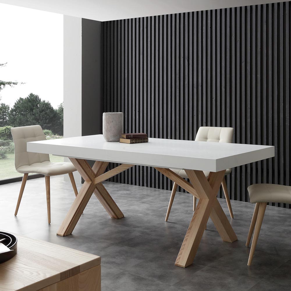 la mesa de comedor extensible Rico. La estética de Rico, juega con un contraste en tre