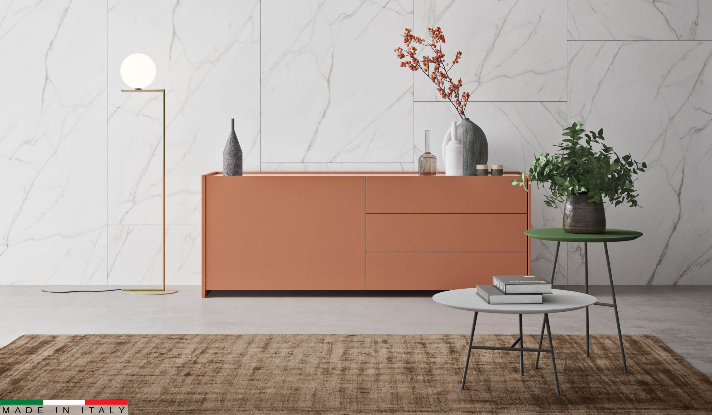 Es un mueble creado sobre la base de los valores artesanales, para lograr la excelencia y alta calidad típicas del Made in Italy, donde se entrelazan ideas innovadoras y cultura a favor de la optimización de procesos y la atención al detalle. Así nace un mobiliario funcional y refinado para el salón.