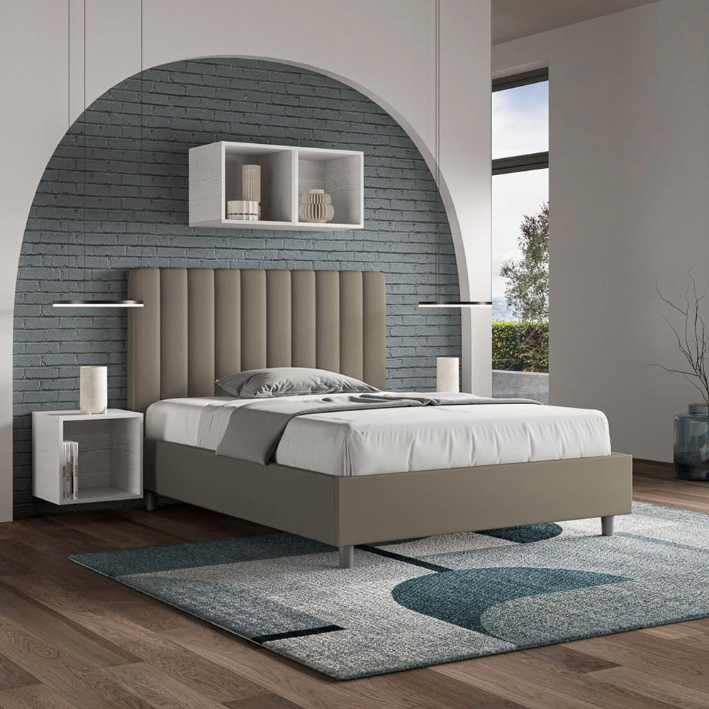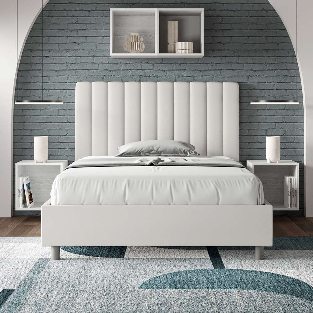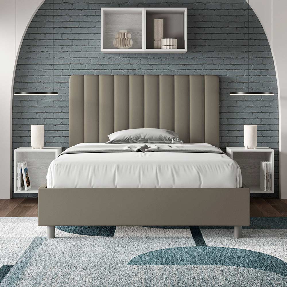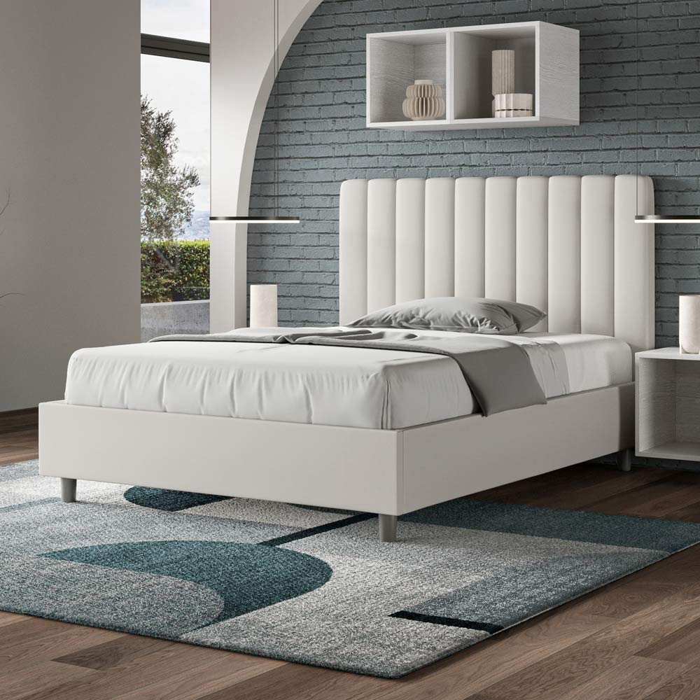 Cama matrimonial acolchada de 120x200 cm, fabricada con paneles de aglomerado y revestida en piel sintética , totalmente Made in Italy.