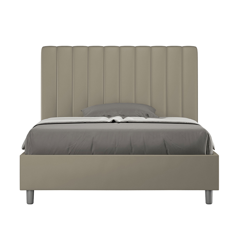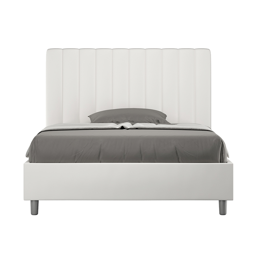 Cama de matrimonio, 120x200 cm, acolchada y tapizada en piel sintética, fabricada en Italia.