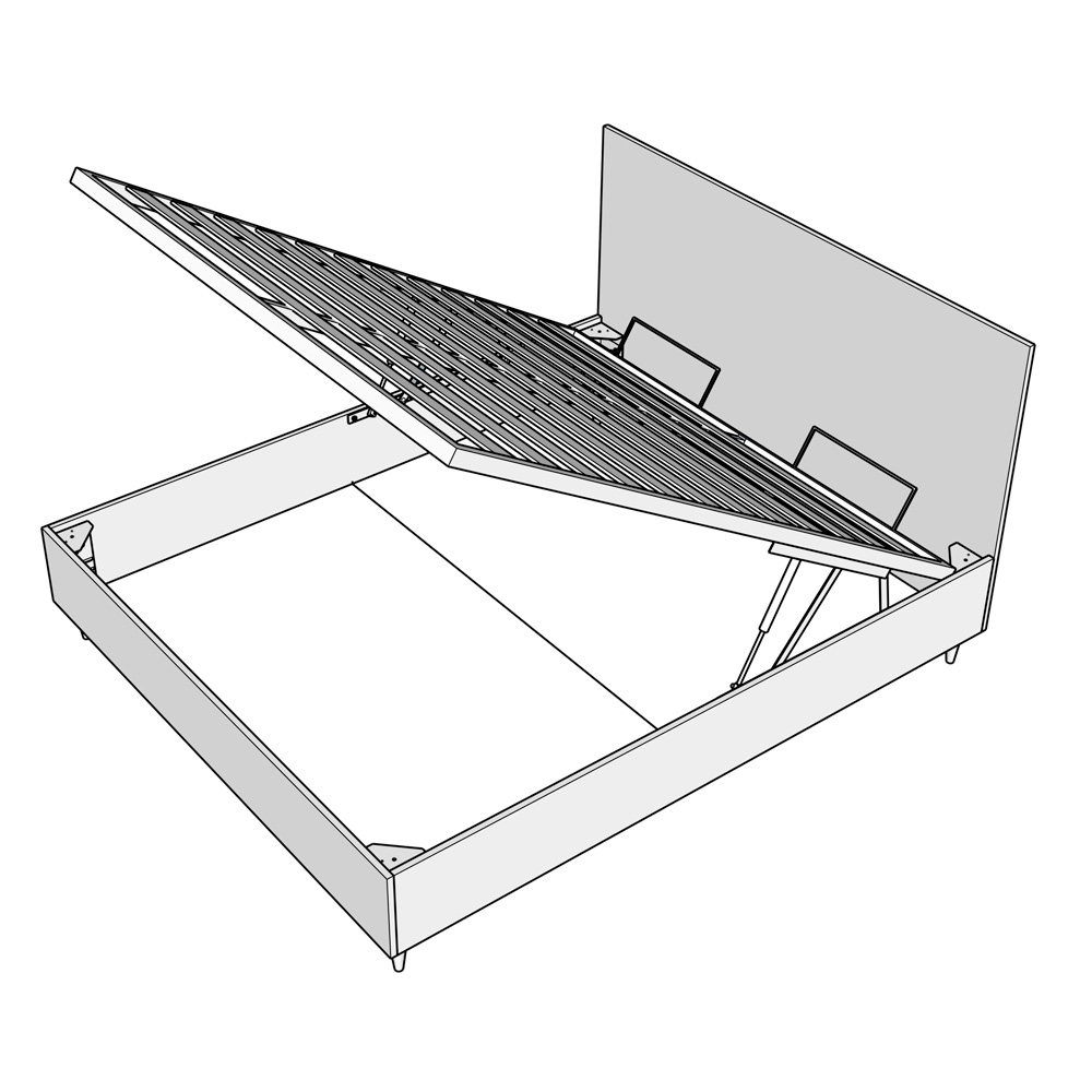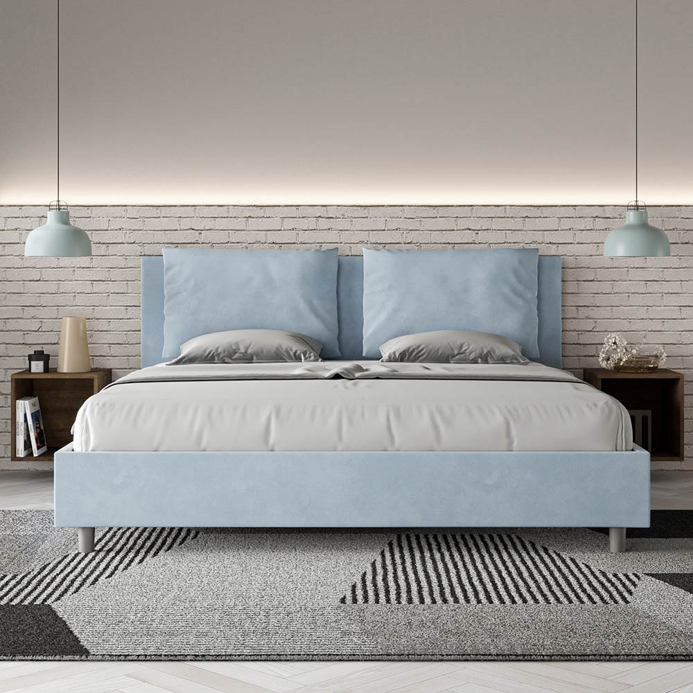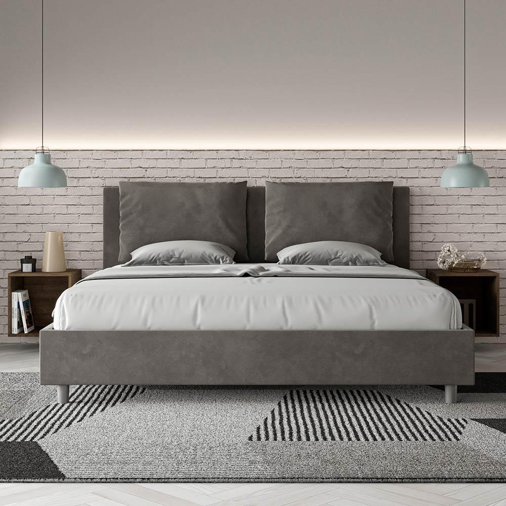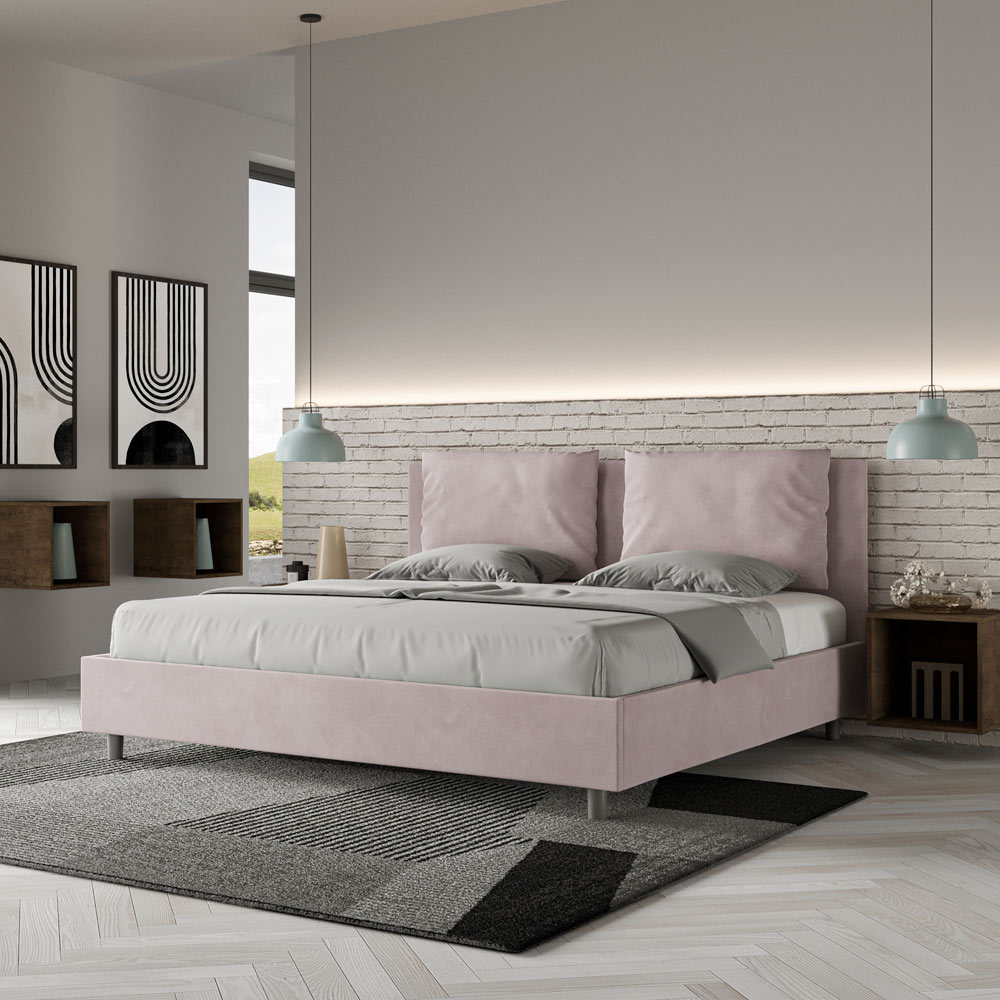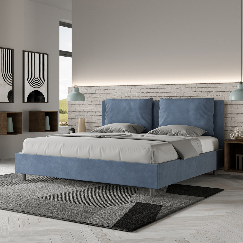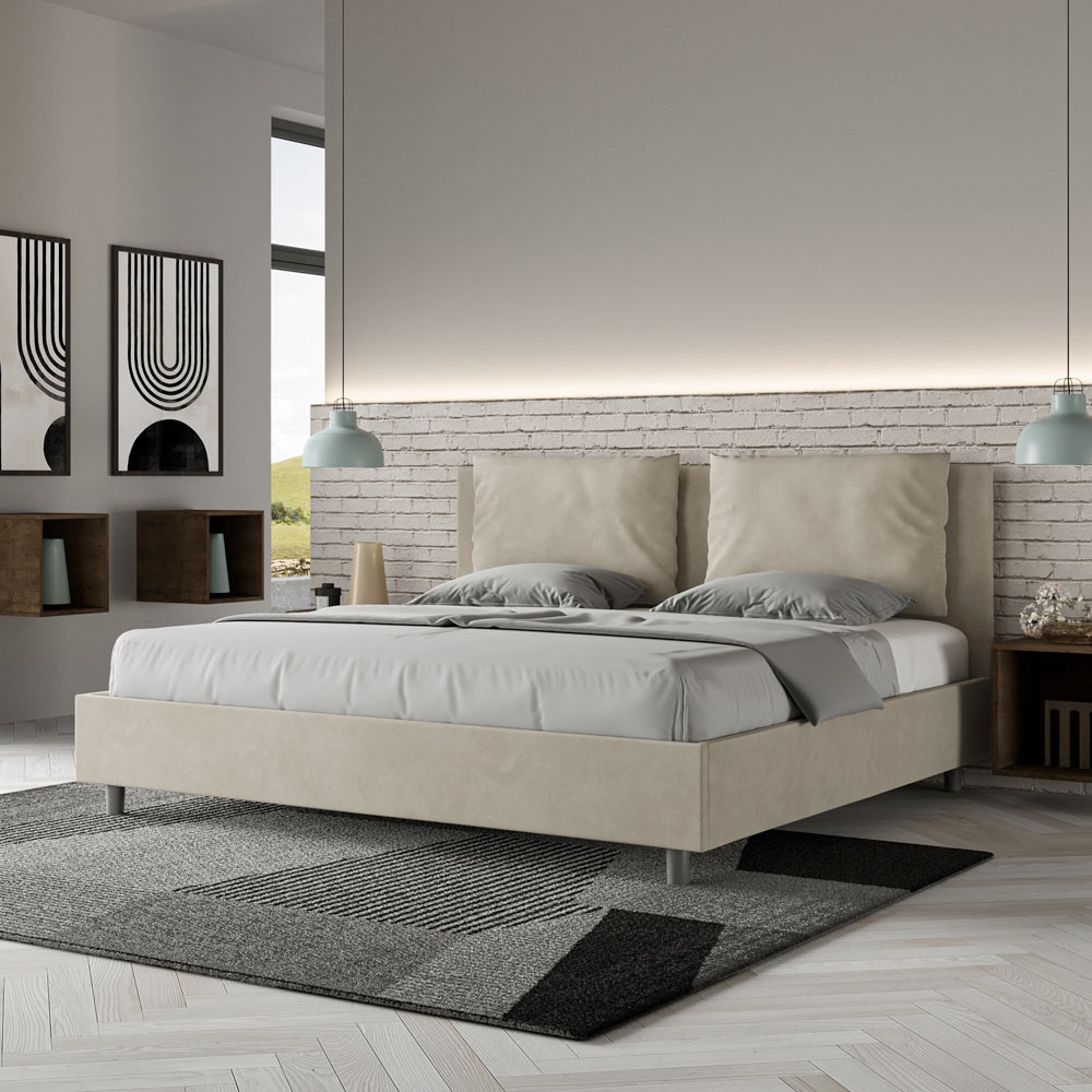 Cama king size de 180x200 cm, acolchada y tapizada en microfibra, fabricada en Italia.