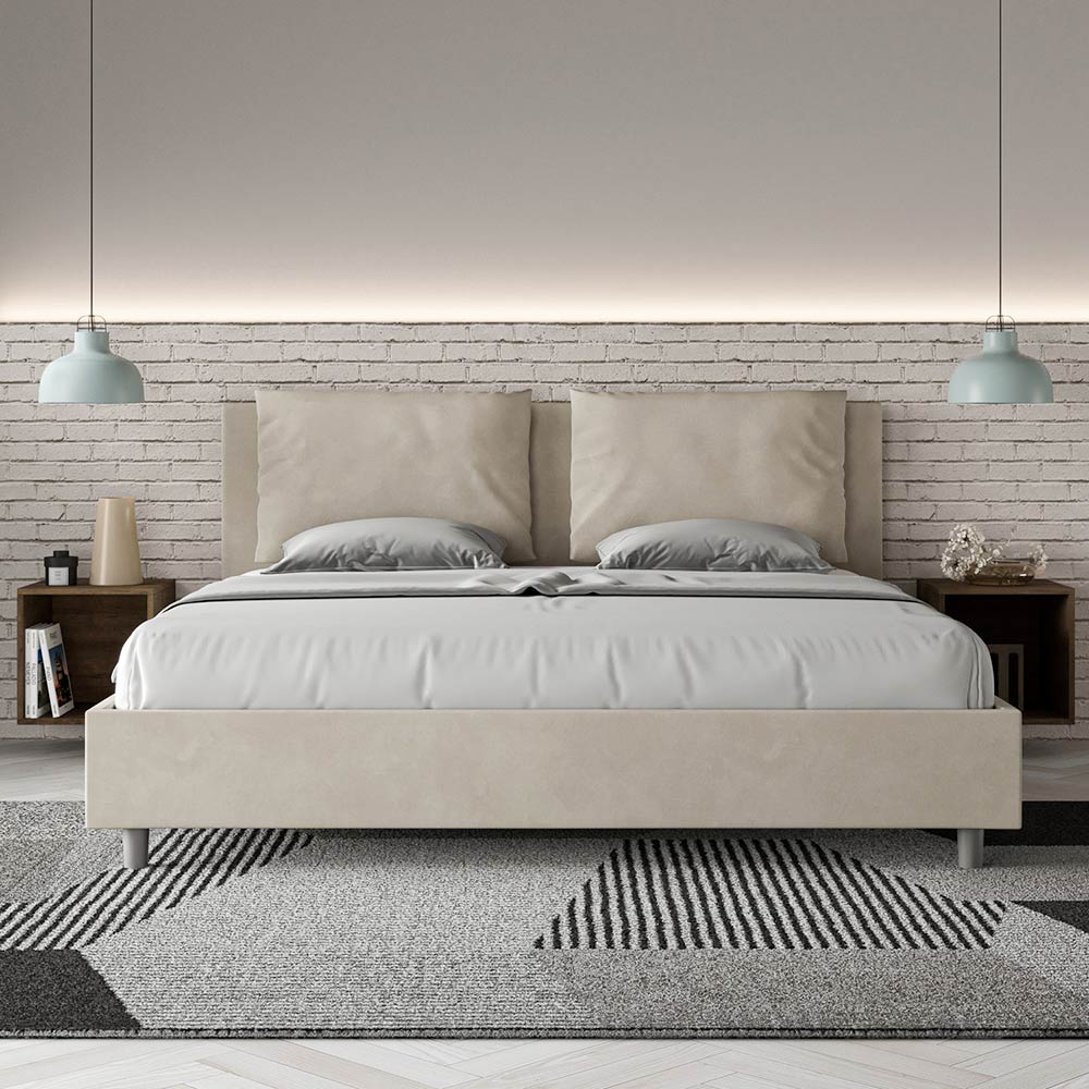 Cama king size de 180x200 cm, acolchada, fabricada con paneles de melamina y revestida de microfibra , totalmente Made in Italy. Esta cama king size con estructura tapizada encarna a la perfección las ventajas de una cama tapizada: comodidad, estilo contemporáneo, funcionalidad y aprovechamiento del espacio . Con su amplio cabecero acolchado , esta cama ofrece un rincón de relax ideal para leer o ver la televisión, realzando la decoración de tu dormitorio. Elegante y con estilo, esta cama está tapizada en microfibra, lo que facilita y agiliza su limpieza: basta con pasarle un paño de microfibra para que luzca impecable.