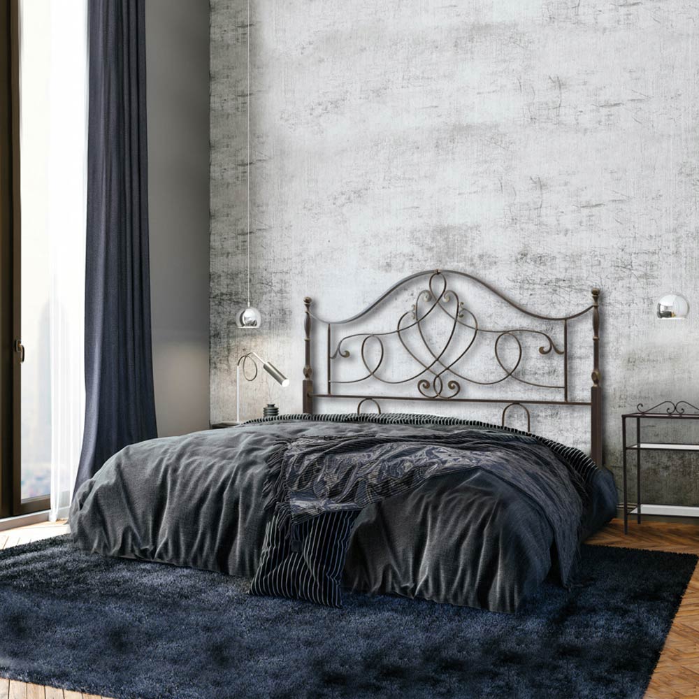 Cama de matrimonio realizada con cabecero y somier opcional en tubularde hierroacabado pintura en polvo color oro marrón antiguo. Con esta cama queremos rendir homenaje a la tradición creando un equilibrio perfecto entre innovación y patrones clásicos combinando acabados y colores elegantes y refinados. En la zona de noche se crea una atmósfera de tiempos pasados que acoge y mima a la persona.