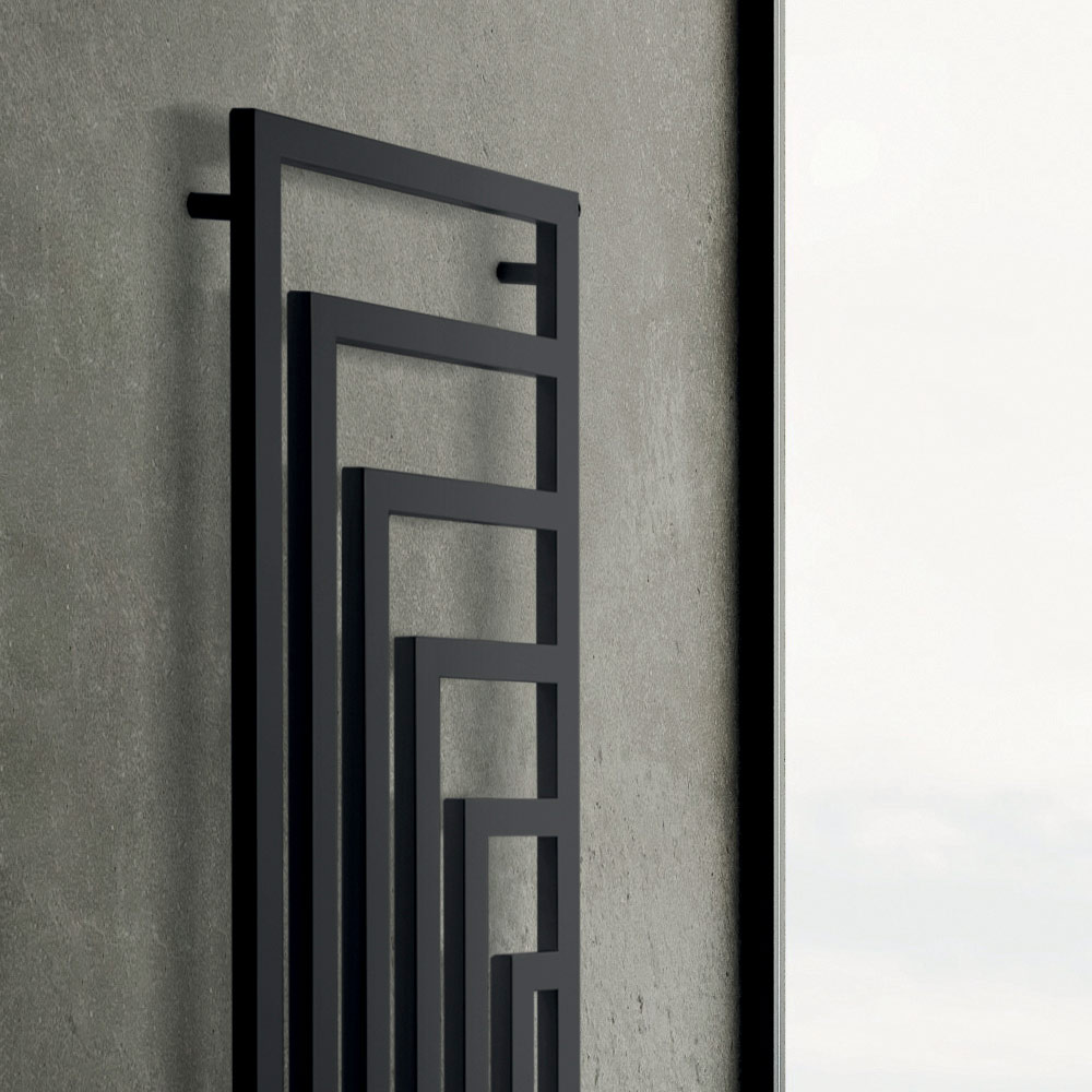 Este radiador de acero encarna la perfección del diseño minimalista y ofrece una solución de calefacción elegante y sofisticada para cualquier espacio moderno. Su estructura vertical, caracterizada por líneas finas y una disposición despejada, transforma un elemento funcional en una auténtica obra de arte mural, perfecta para ambientes contemporáneos.