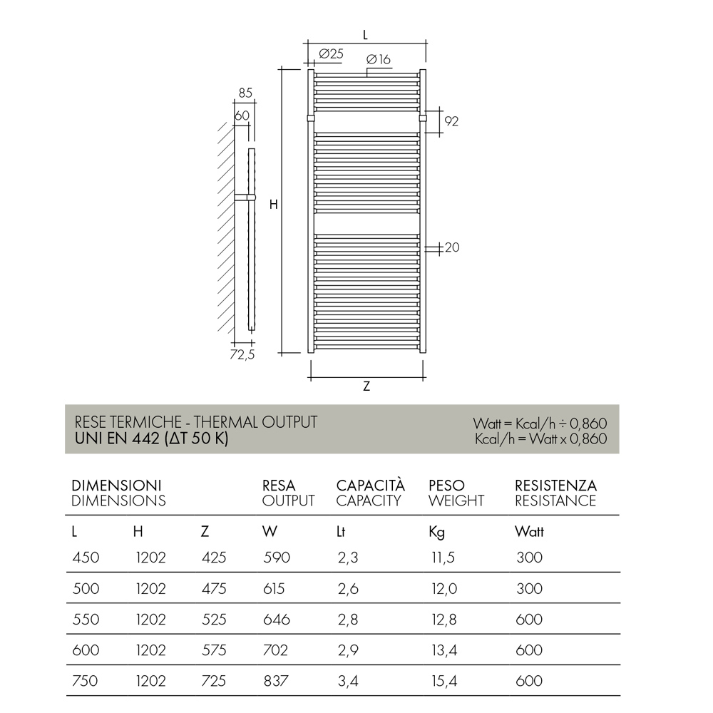 Se suministra con resistencia eléctrica completa con cable y enchufe Schuko.