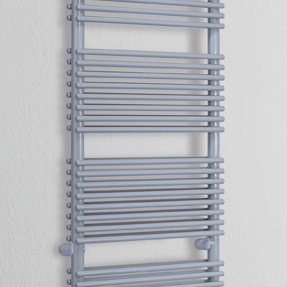 Secatoallas hidráulico en acero al carbono con acabado en aluminio brillante compuesto por una doble serie de elementos horizontales de 1,6 cm de diámetro soldados a colectores verticales de 3,5 cm de diámetro íntegramente fabricados en Italia con kit de fijación a la pared, válvula de ventilación y tapón ciego incluidos . Este elemento combina tecnología y presencia formal , convirtiéndose en un verdadero objeto de diseño , una fuente de bienestar y placer estético capaz de personalizar y completar el ambiente. Sin embargo, es esencial que el diseño y la funcionalidad se equilibren para crear un producto que no sólo sea hermoso a la vista sino también utilizable y eficiente.