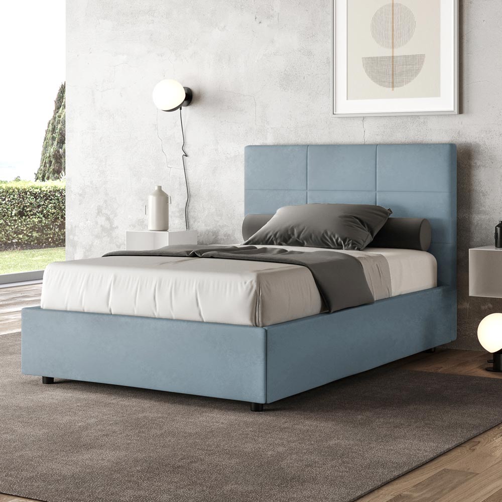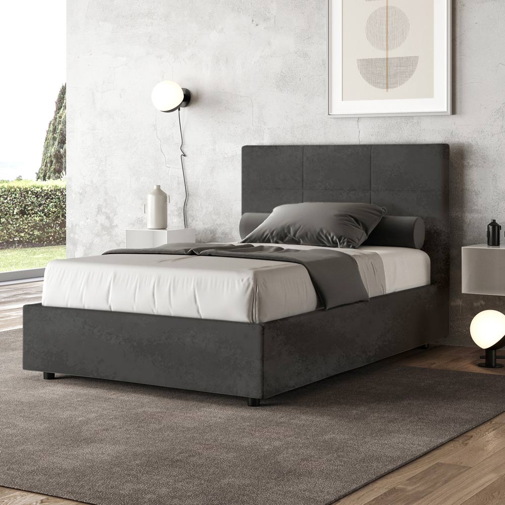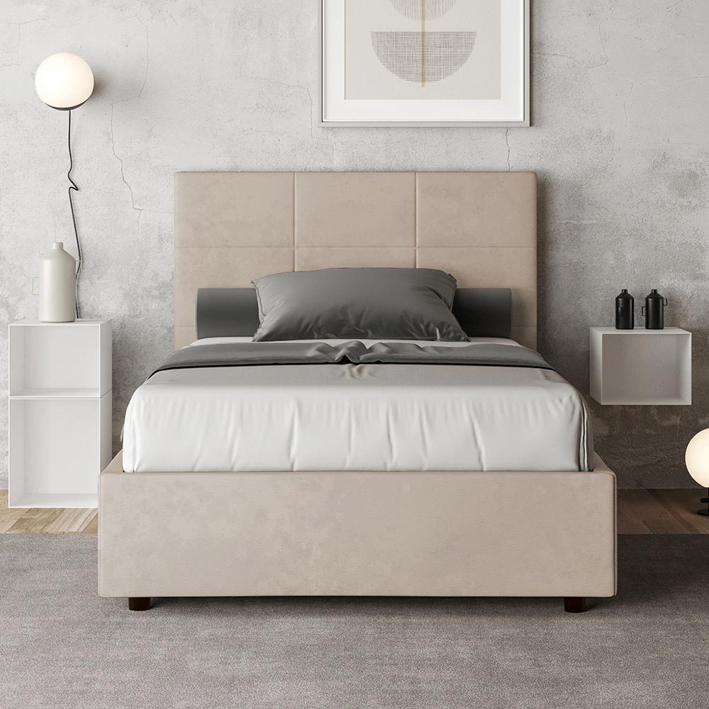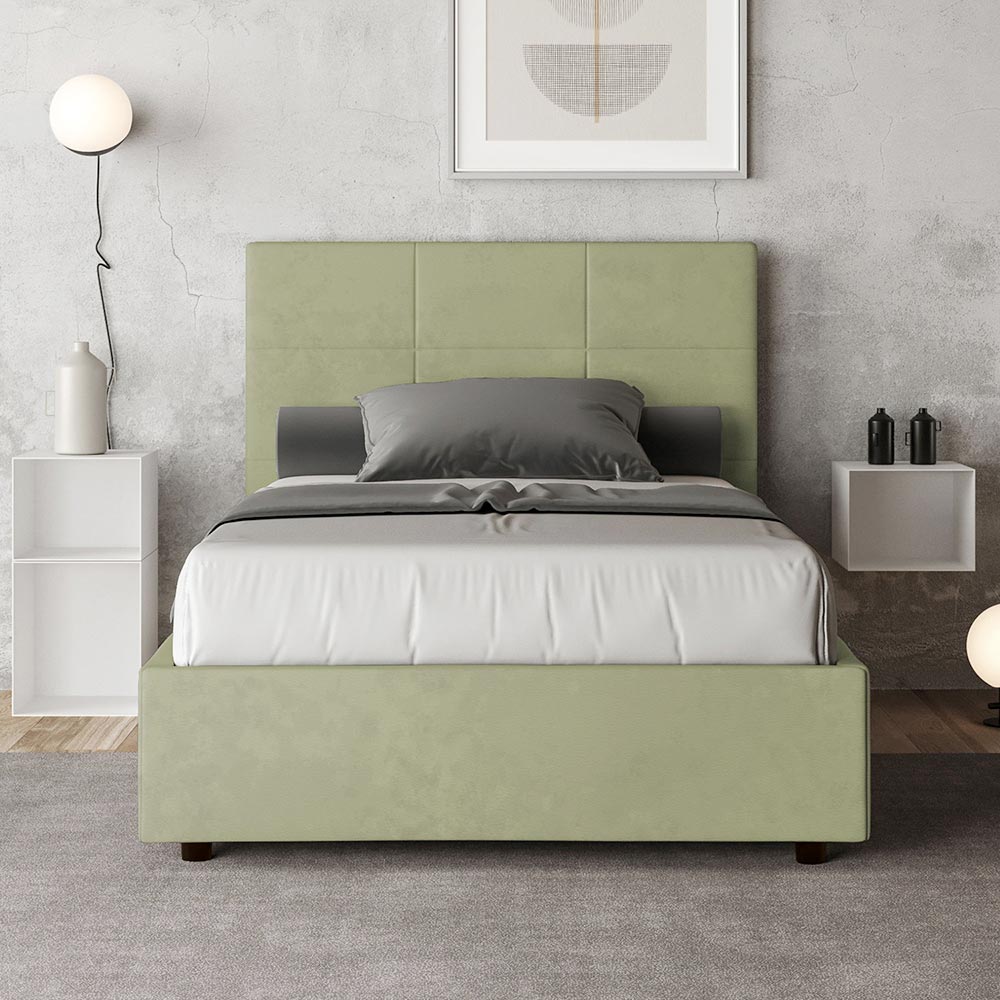 Cama francesa 140x200 cm acolchada y revestida en microfibra, Fabricada en Italia