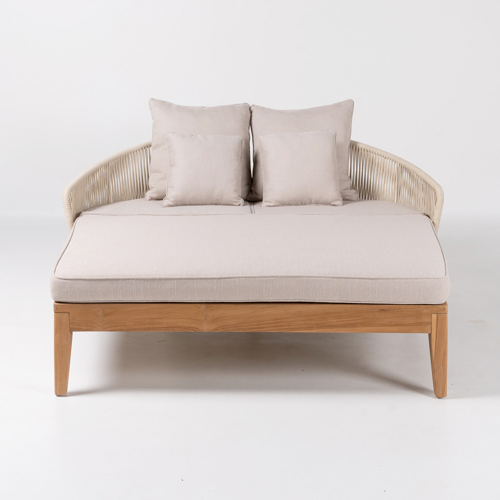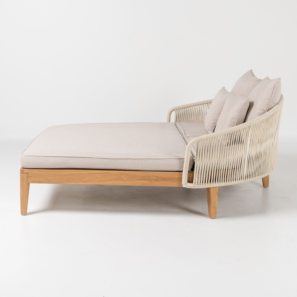 Todo el perfil está embellecido con un refinado tejido de cuerda de olefina/PP , elaborado magistralmente para garantizar no solo un impacto estético distintivo, sino también un alto rendimiento en términos de durabilidad, comodidad y resistencia a los rayos UV.