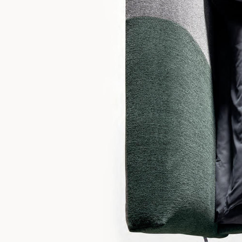 Los paneles inferiores del arcón contenedor, certificados en clase E1 con bajísimo contenido de formaldehído, están realizados en laminado de 10,5 mm de espesor, de color gris a juego con el tejido interno del marco de la cama, para permitir una fácil limpieza e higiene mediante un paño húmedo común para el polvo.