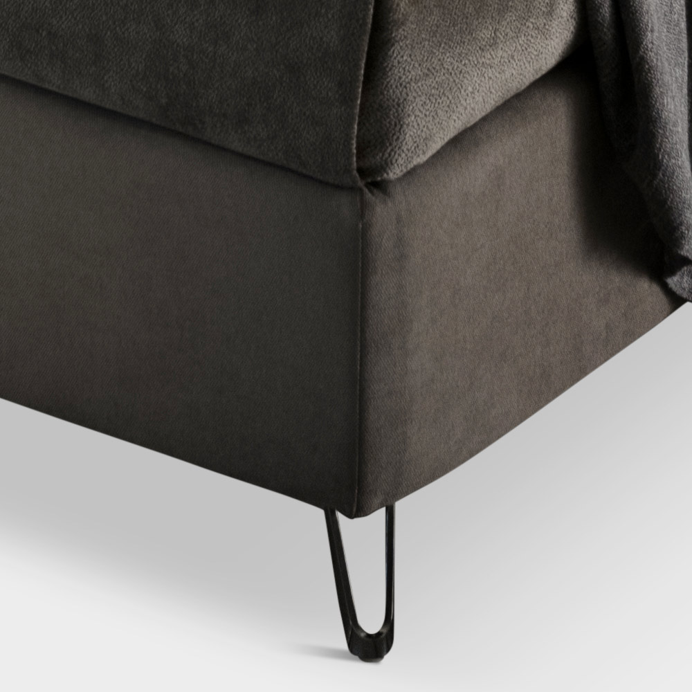 Los paneles inferiores del arcón contenedor, certificados en clase E1 con bajísimo contenido de formaldehído, están realizados en laminado de 10,5 mm de espesor, de color gris a juego con el tejido interno del marco de la cama, para permitir una fácil limpieza e higiene mediante un paño húmedo común para el polvo.
