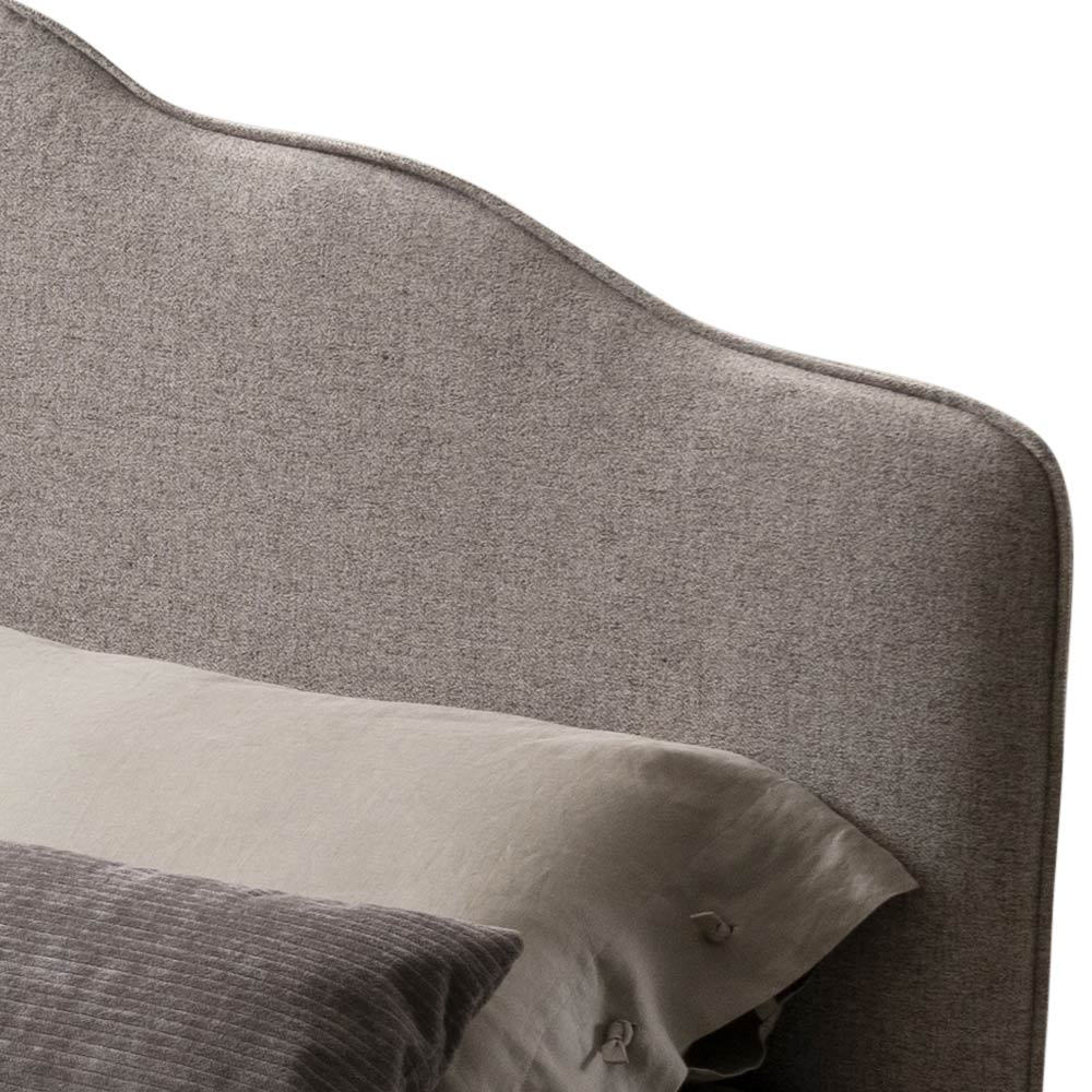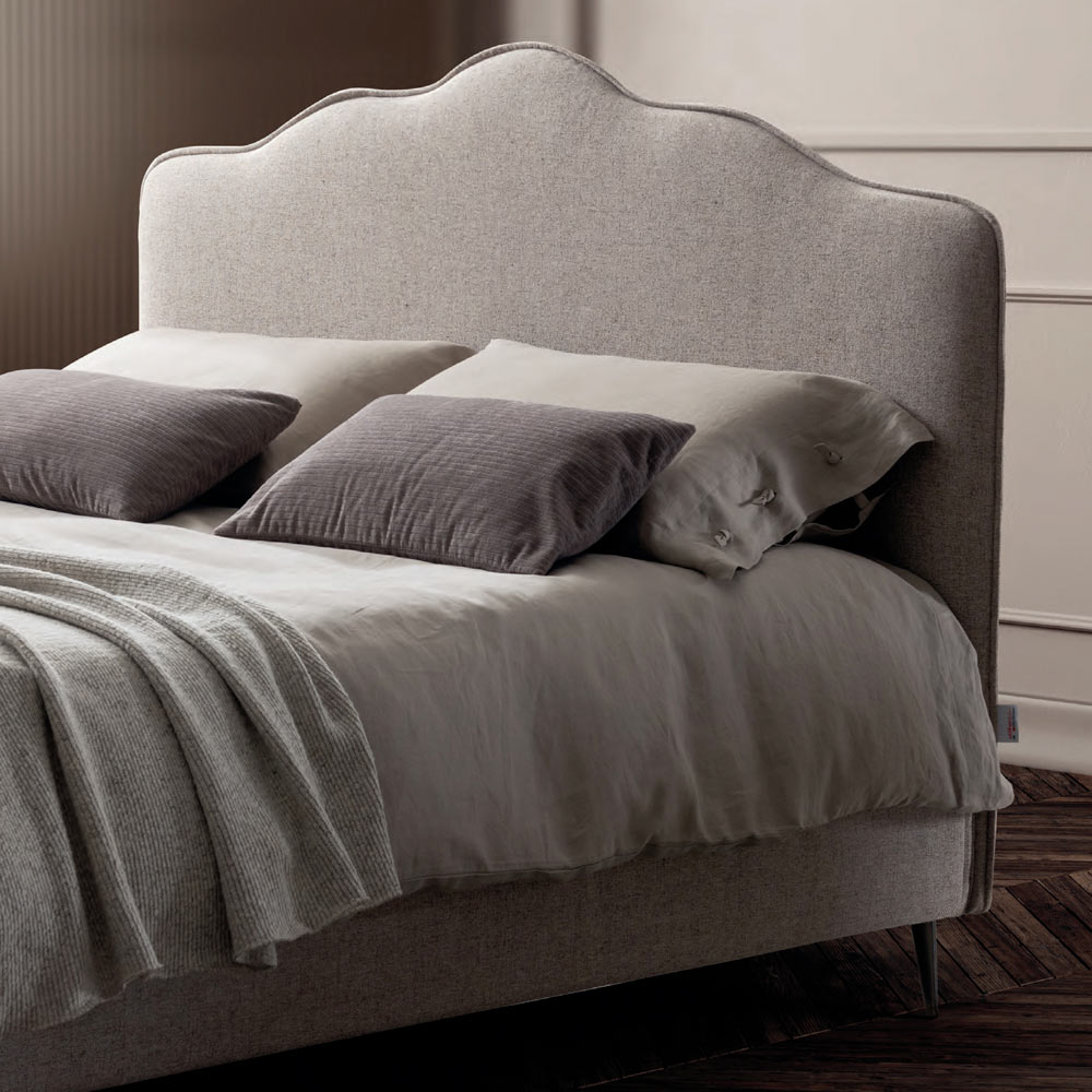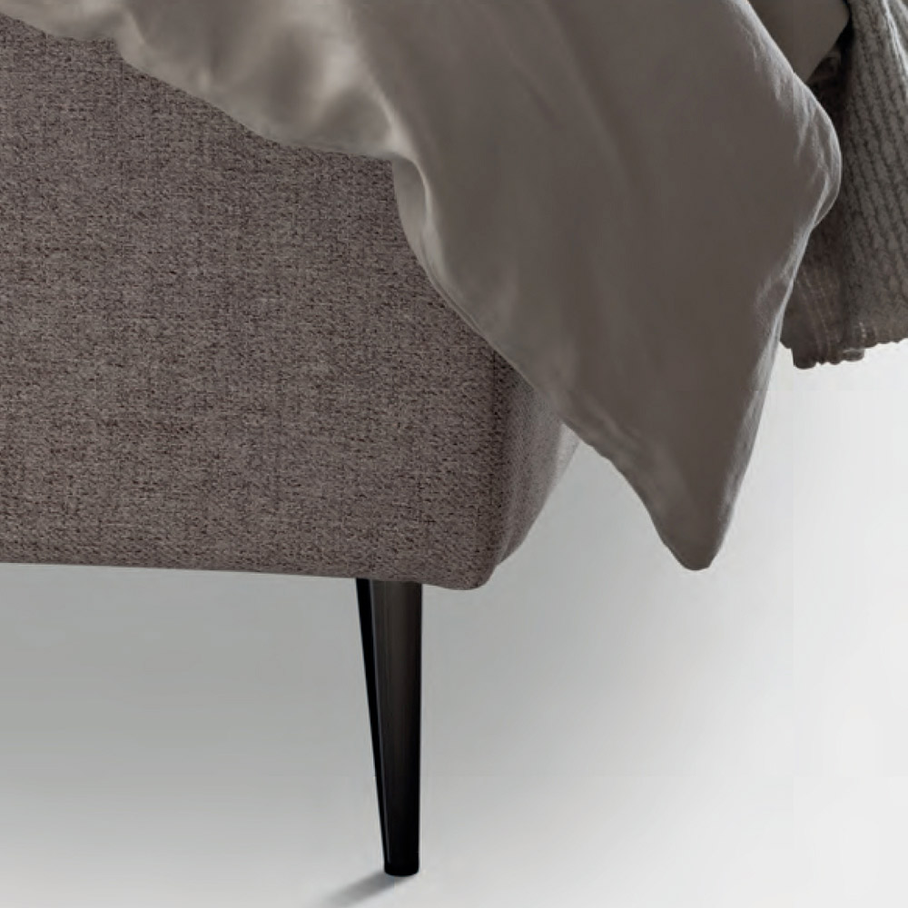Cama de matrimonio revestida en tejido ignífugo con base dinámica , arcón de almacenaje y pies de metal acabado moka (altura 15 cm). Esta cama es el epítome de la comodidad y el diseño contemporáneo. Es una combinación perfecta de refinamiento y funcionalidad , diseñada para ofrecer noches de puro relax y un estilo inigualable.
