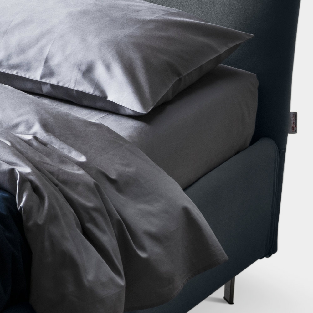Los paneles inferiores del arcón contenedor, certificados en clase E1 con bajísimo contenido de formaldehído, están realizados en laminado de 10,5 mm de espesor, de color gris a juego con el tejido interno del marco de la cama, para permitir una fácil limpieza e higiene mediante un paño húmedo común para el polvo.