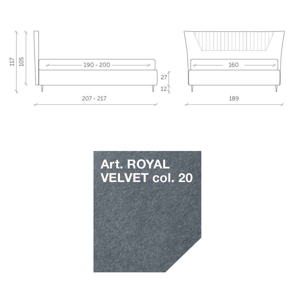 Cama de matrimonio con base dinámica , arcón contenedor,pies de metal con acabado acero pulido (altura 12 cm) y cabecero con un diseño particular e innovador: los laterales tienen líneas curvas y la parte central del cabecero está realizada con inserciones acolchadas con amplias láminas verticales en tejido ignífugo. Esta cama es el epítome de la comodidad y el diseño contemporáneo. Es una combinación perfecta de refinamiento y funcionalidad , diseñada para ofrecer noches de puro relax y un estilo inigualable.