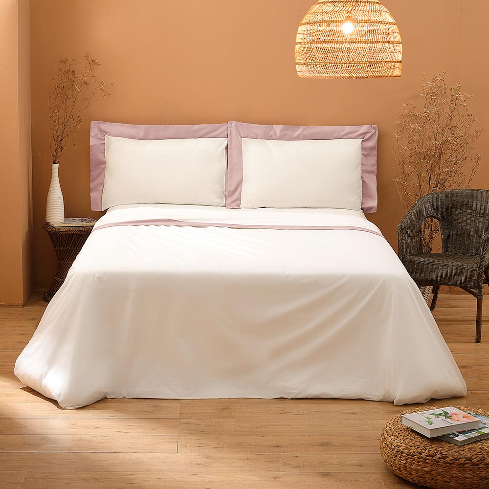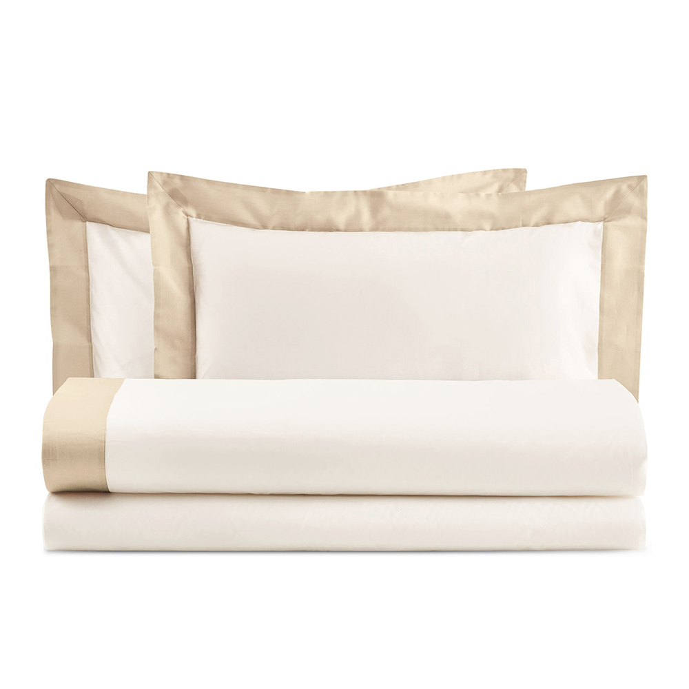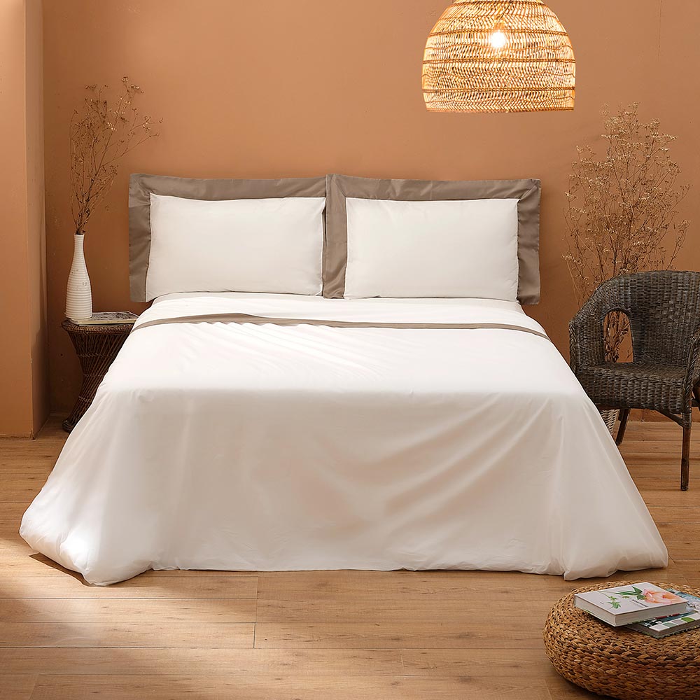 Juego de cama de matrimonio en 100% algodón de 160 hilos y 10% algodón satén de 300 hilos.
