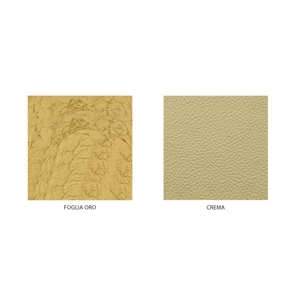 Cama de matrimonio realizada con cabecero y pie de cama a juego en hierro macizo acabado pintura hoja artesanal y acolchado en auténtica piel acabado color crema. El larguero es curvo de 40x20 cm. Elegancia y majestuosidad son las palabras clave que describen los acabados de este producto de estilo clásico y atemporal. El dormitorio se enriquece con una atmósfera única y evocadora que crea una sensación inolvidable de realeza en quienes entran en él. La calidad y el confort están siempre garantizados gracias a la elección de los materiales utilizados para la construcción.