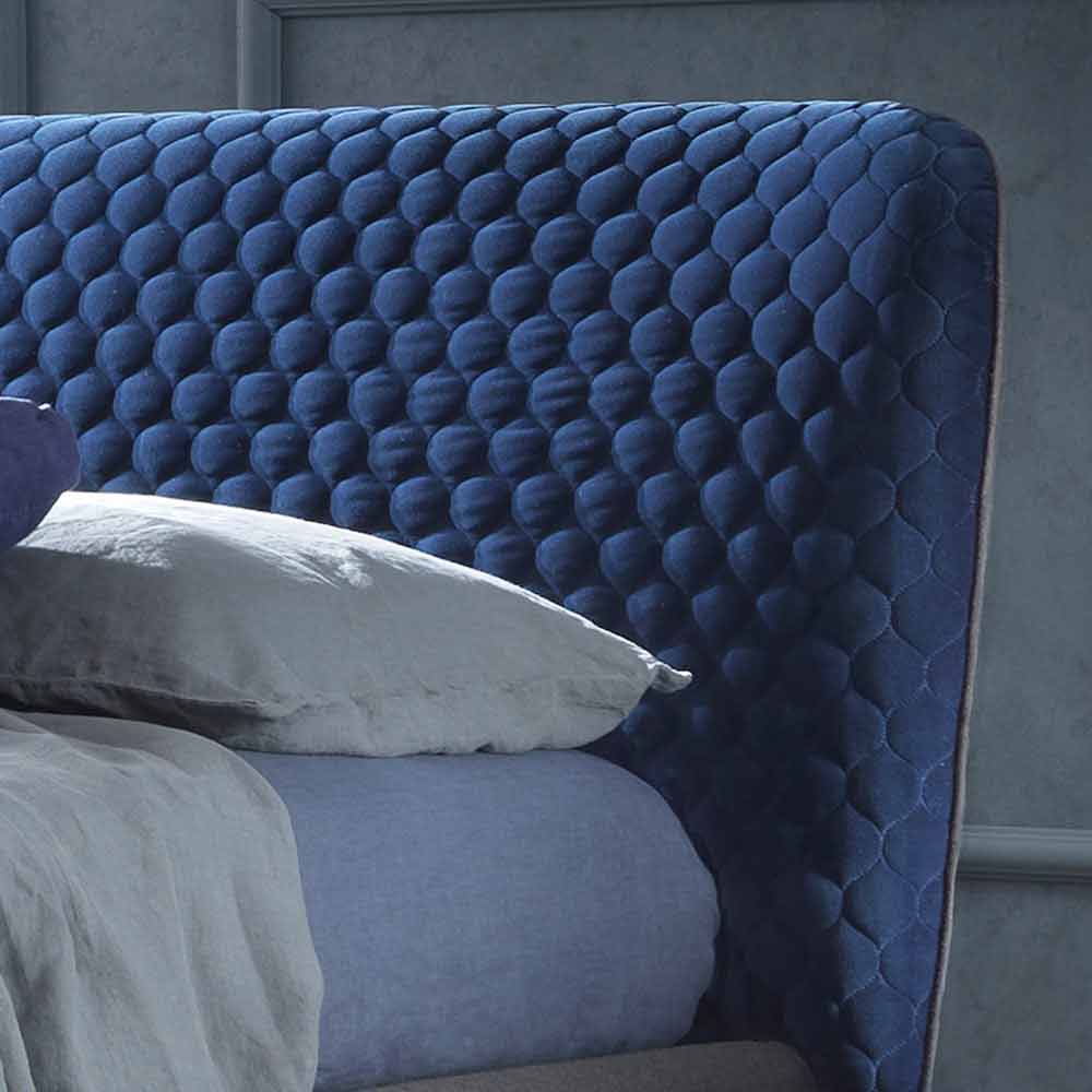 Cama doble con contenedor, Corolle de Bolzan La cama de matrimonio Corolle de diseño contemporáneo, presenta una línea sinuosa entrelazada con una cuidada elección de colores. Líneas suaves, que encontramos también en la textura del cabecero. El contenedor presenta una estructura en aglomerado de madera con acabado interno sintético con efecto abeto, estos últimos se sostienen mediante perfiles de poliuretano expandido y tubulares. Es completamente desenfundable. La estructura está formada por listones de madera de abeto con acabado interior natural h.29, y está revestida de espuma de poliuretano sin clorofluorocarbonos según las normas UNI y revestida con velfodera estable a la luz. Los fondos de la estructura son de aglomerado de madera con acabado interior sintético efecto abeto, estos últimos están soportados por perfiles de PE y tubulares. La altura interior del cajón es de 18 centímetros. Somier de láminas con estructura de metal, marco curvado con perfil de 50x37 mm pintado con polvos epoxídicos. Somier de láminas ortopédico normal, láminas curvadas de madera multicapa de haya. Pies de jarrón h.4 cm