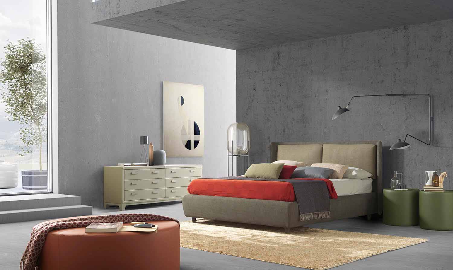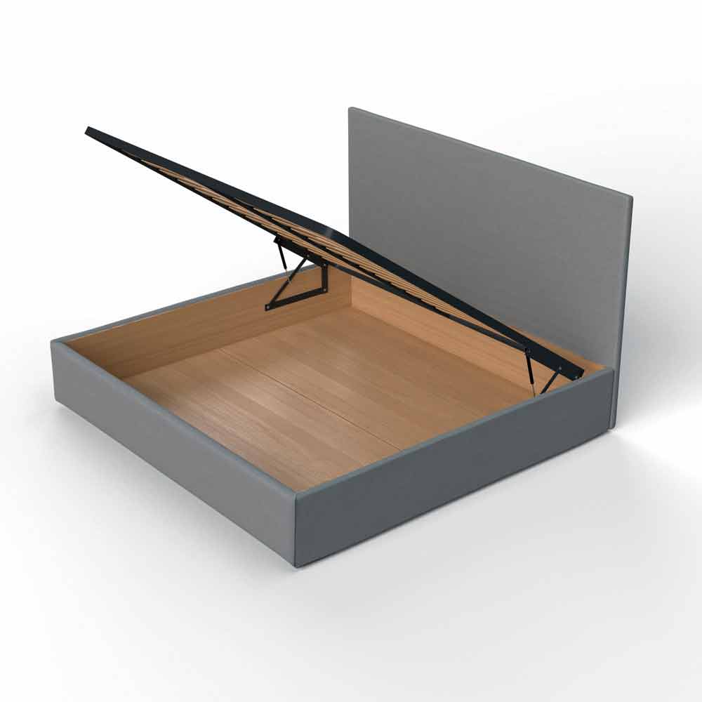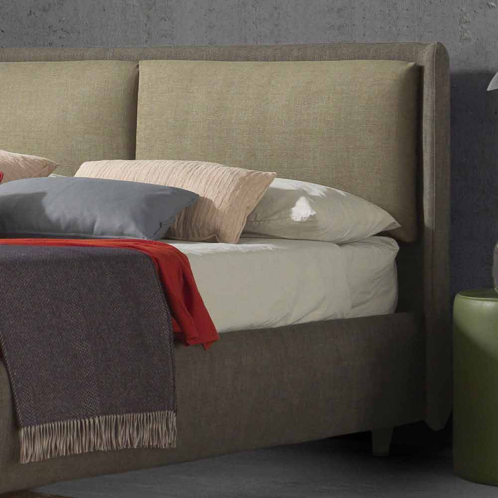 Cama doble con cajón de almacenaje Kate de Bolzan, fabricada en Italia Se caracteriza por un diseño moderno. La elaboración artesanal de las costuras a la vista en el cabecero es un detalle valioso, capaz de recrear un look glamuroso y particular. La cama Kate tiene fundas completamente desenfundables. Estructura en tablero de madera de abeto con acabado interior natural h.29 cm, recubierto de espuma de poliuretano sin clorofluorocarbonos según las normas UNI y revestido de velfodera estable a la luz. Los fondos de la estructura son de aglomerado de madera con acabado interior sintético con efecto abeto, estos últimos están soportados por perfiles de PE y tubulares. Somier de láminas con estructura de metal, marco curvado con perfil de 50x37 mm pintado con polvos epoxídicos. Somier de láminas ortopédico normal, láminas curvadas de madera contrachapada de haya. Pies de jarrón h 4 cm.