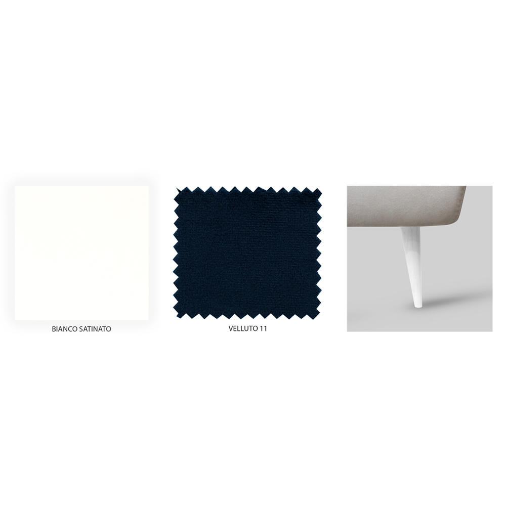 - Modelo H 25 pies: cabecero blanco satinado, estructura de cama de terciopelo gris/azul 11 y pies de madera blanca