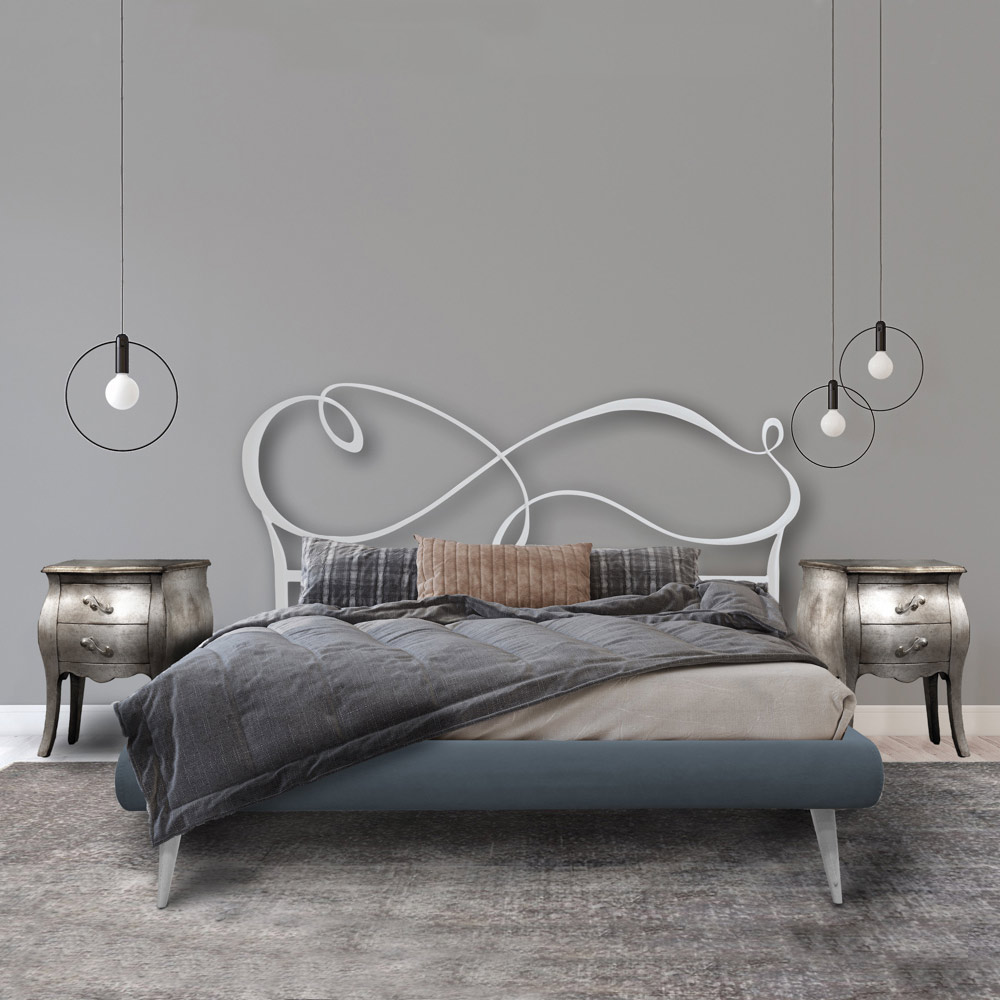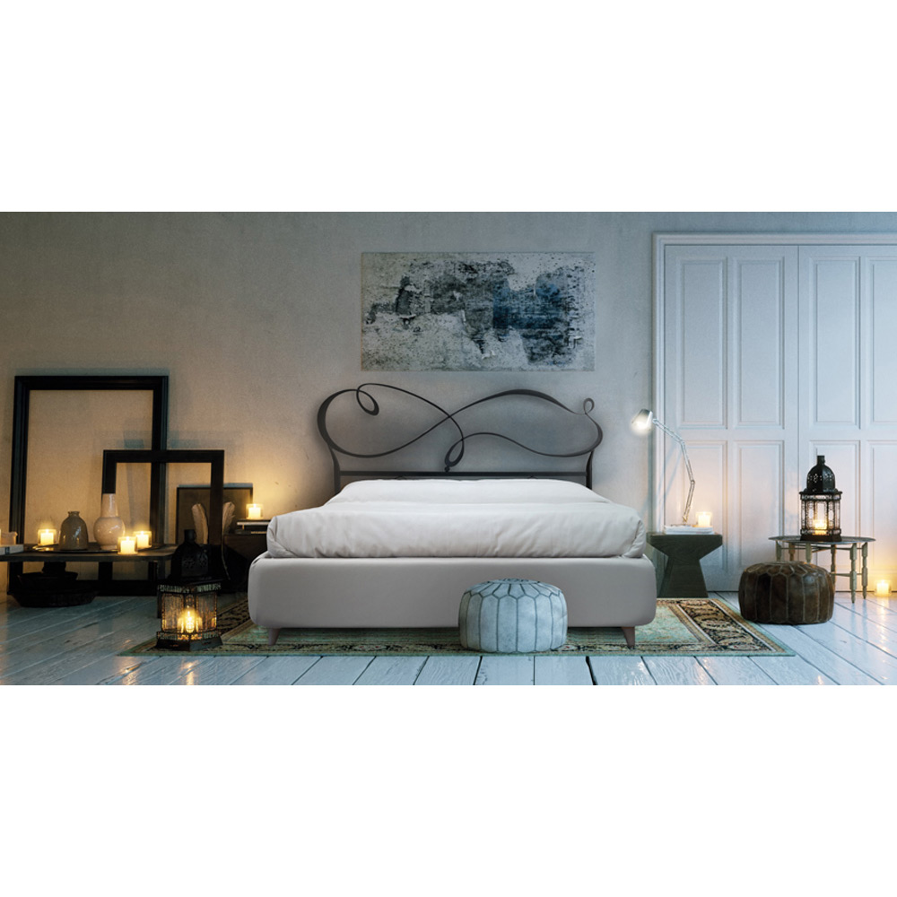 Esta cama nació del deseo de crear una atmósfera luminosa y suspendida en el dormitorio. Las líneas crean un soplo de viento que aligera la estructura y la hace perfecta para completar el mobiliario de cualquier zona de noche sin renunciar a la funcionalidad y el confort.