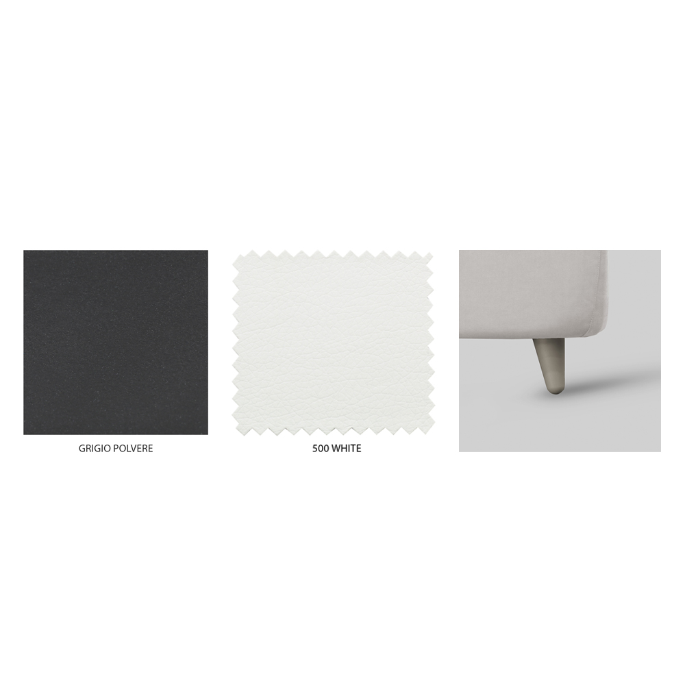 Acabados disponibles:- Modelo H 11 pies: cabecera gris polvo, estructura de cama en ecopiel blanca y pies de polipropileno gris tórtola