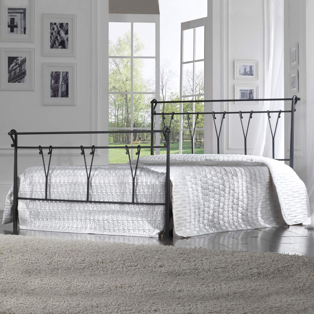 Cama de matrimonio realizada con cabecero y pie de cama a juego en tubularde hierroacabado pintura en polvo. Cama de estilo tradicional y elegante que crea una atmósfera suave y envolvente en cada zona de cama en la que se inserta. Los detalles en forma de Y en el cabecero y el pie de cama son ese toque único que hace que este producto sea inimitable.