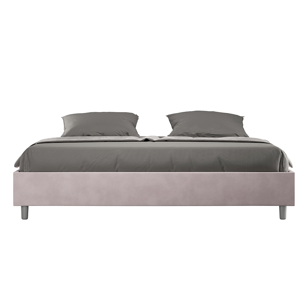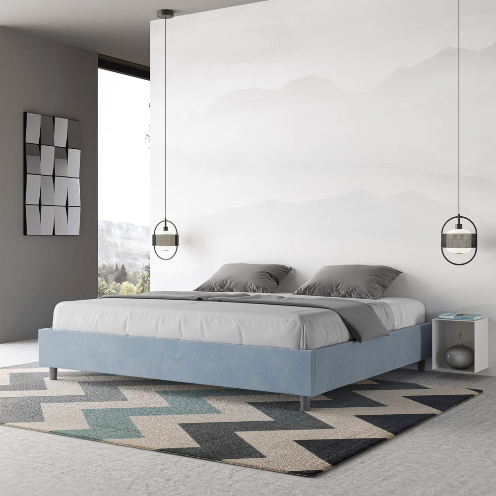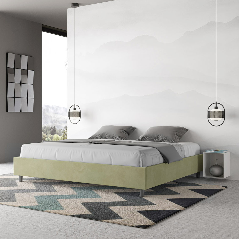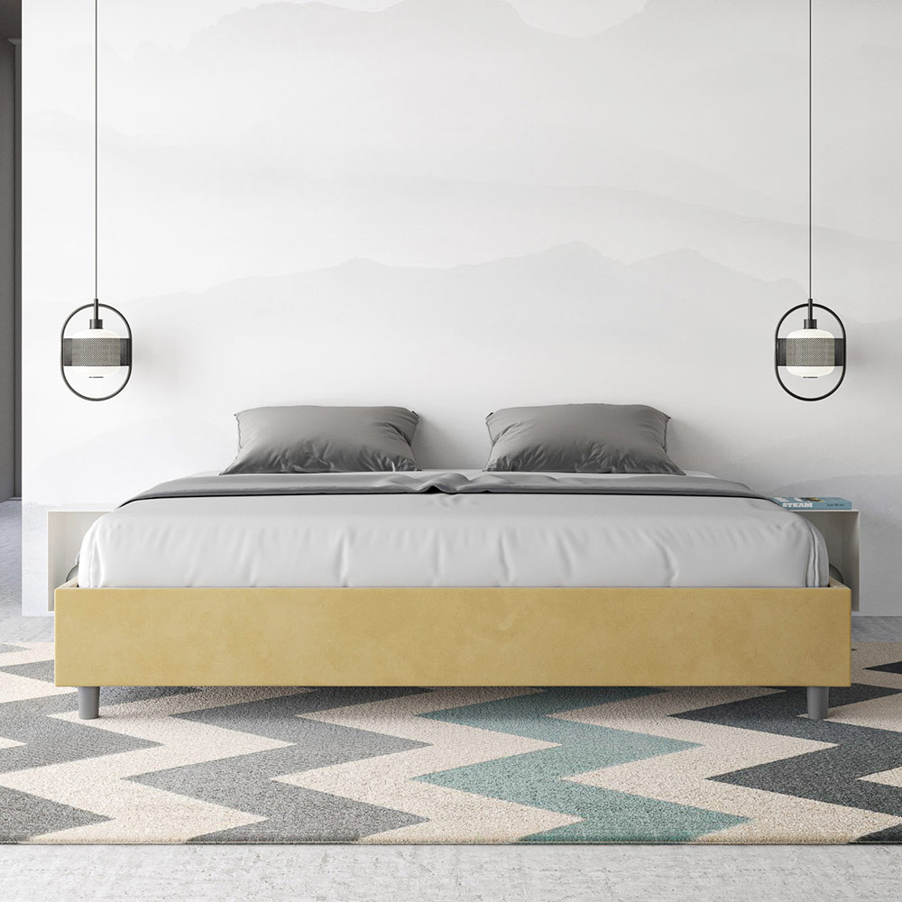 Cama king size de 190x200 cm, acolchada, fabricada con paneles de melamina y revestida de microfibra , totalmente Made in Italy. Esta cama king size destaca por su diseño limpio y minimalista . Su estética discreta y su versatilidad facilitan su integración en cualquier ambiente. Una de sus características distintivas es la ausencia de un cabecero tradicional , lo que la hace ideal para colocarla en espacios singulares, como debajo de una ventana, en un ático o cerca de una pared decorativa, sin obstruir la vista ni lograr el efecto deseado.