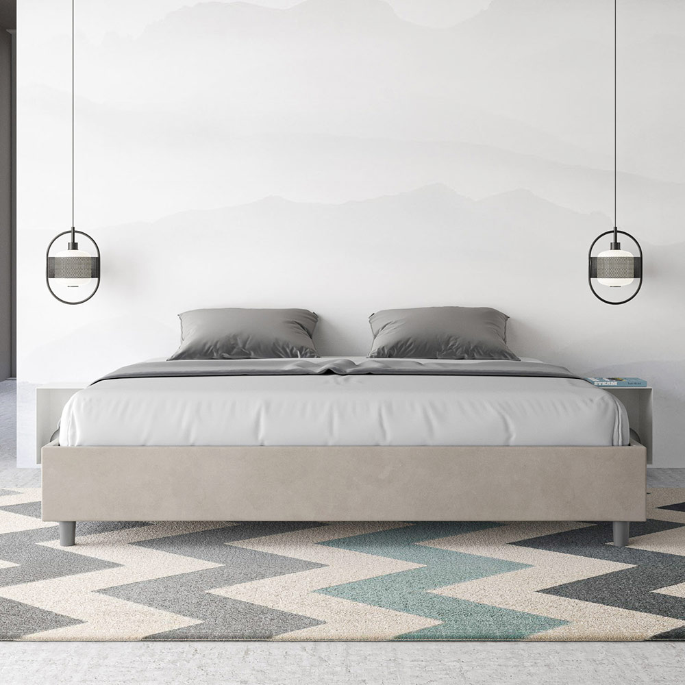 Cama super king size de 200x200 cm, acolchada, fabricada con paneles de melamina y revestida de microfibra , totalmente Made in Italy.