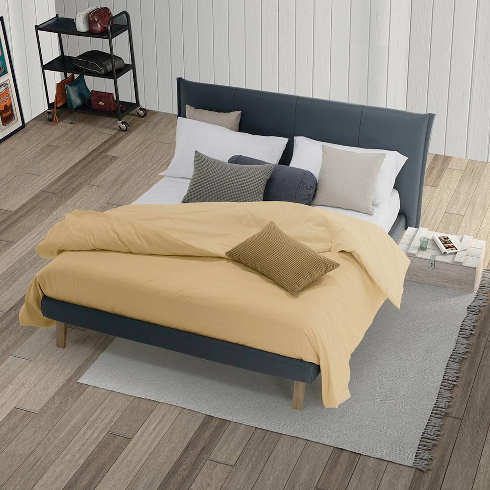 Cama doble de alta calidad sin contenedor acolchado, hecha a mano en Italia en tela o cuero ecológico.