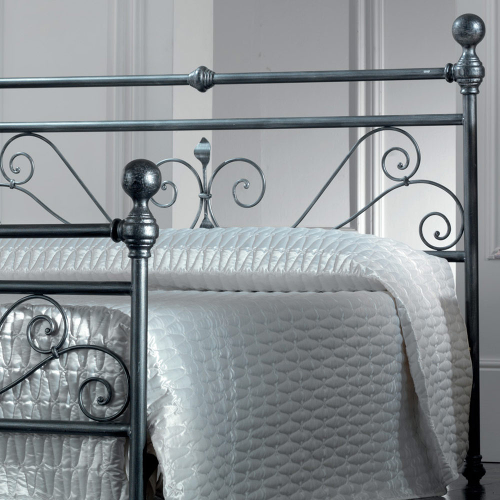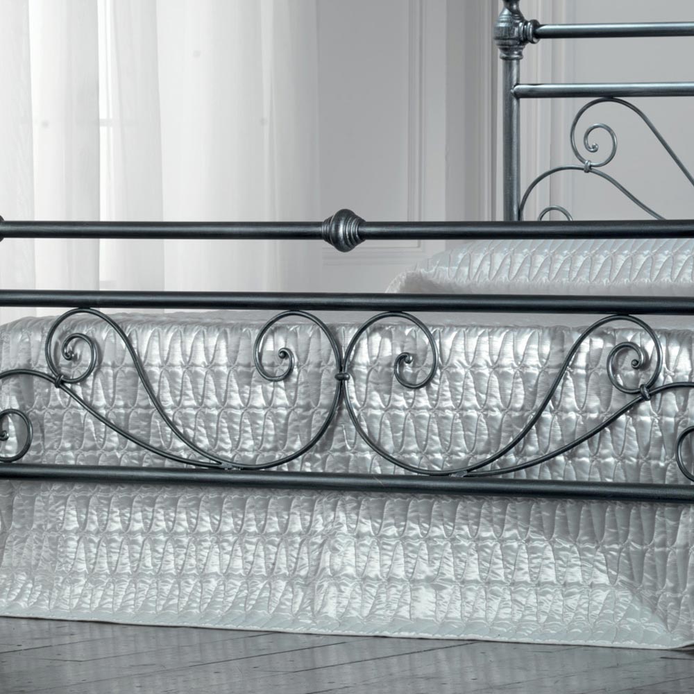 Cama de matrimonio realizada con cabecero y pie de cama a juego en tubularde hierroacabado pintura en polvo negro-plata. Este elemento de estilo clásico y atemporal crea un ambiente acogedor y cálido en cualquier zona de dormitorio en la que se coloque. Los acabados y líneas se unen para crear una cama con impacto visual, calidad y funcionalidad.