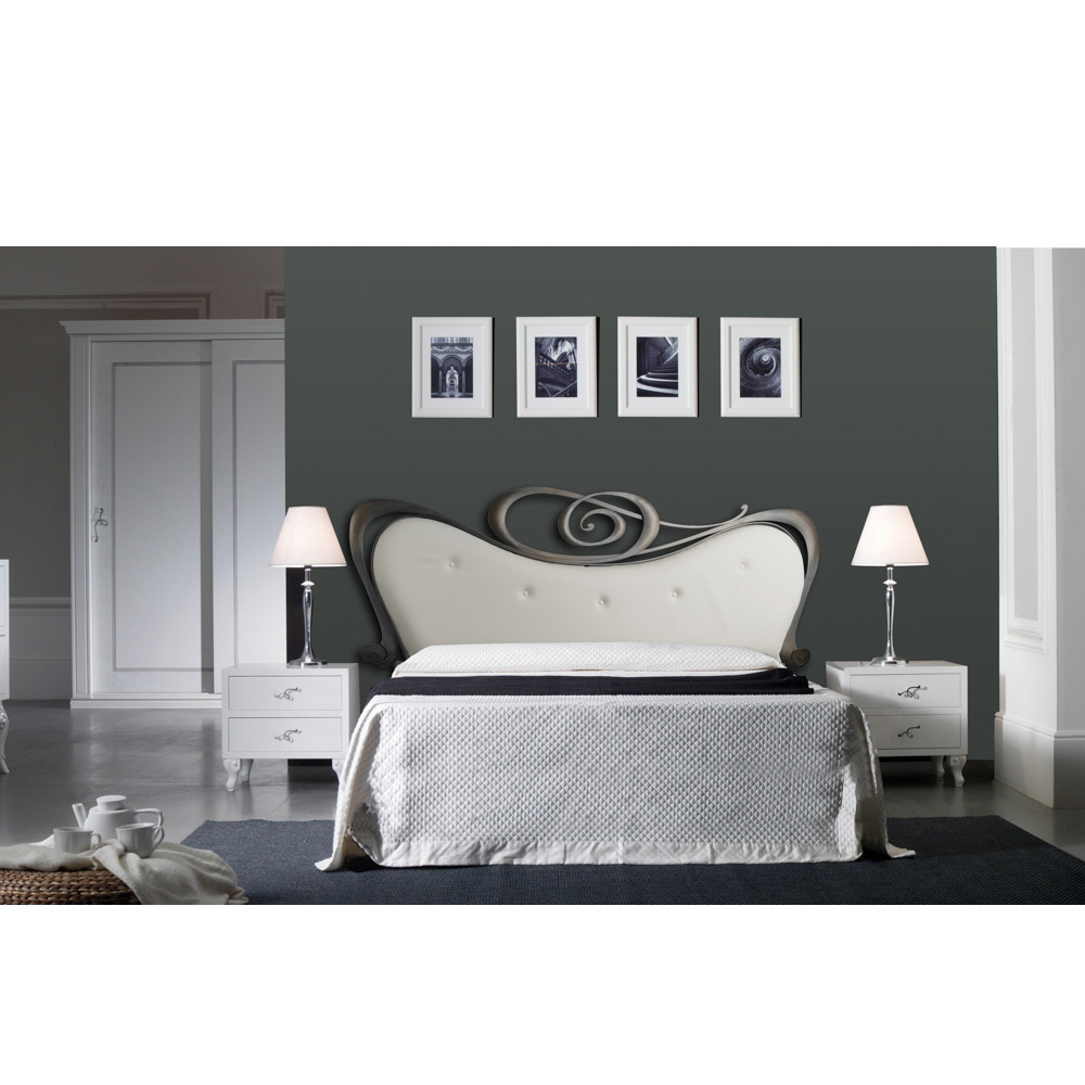 Cama doble con cabecero de hierro y 2 mesitas de noche Made in Italy