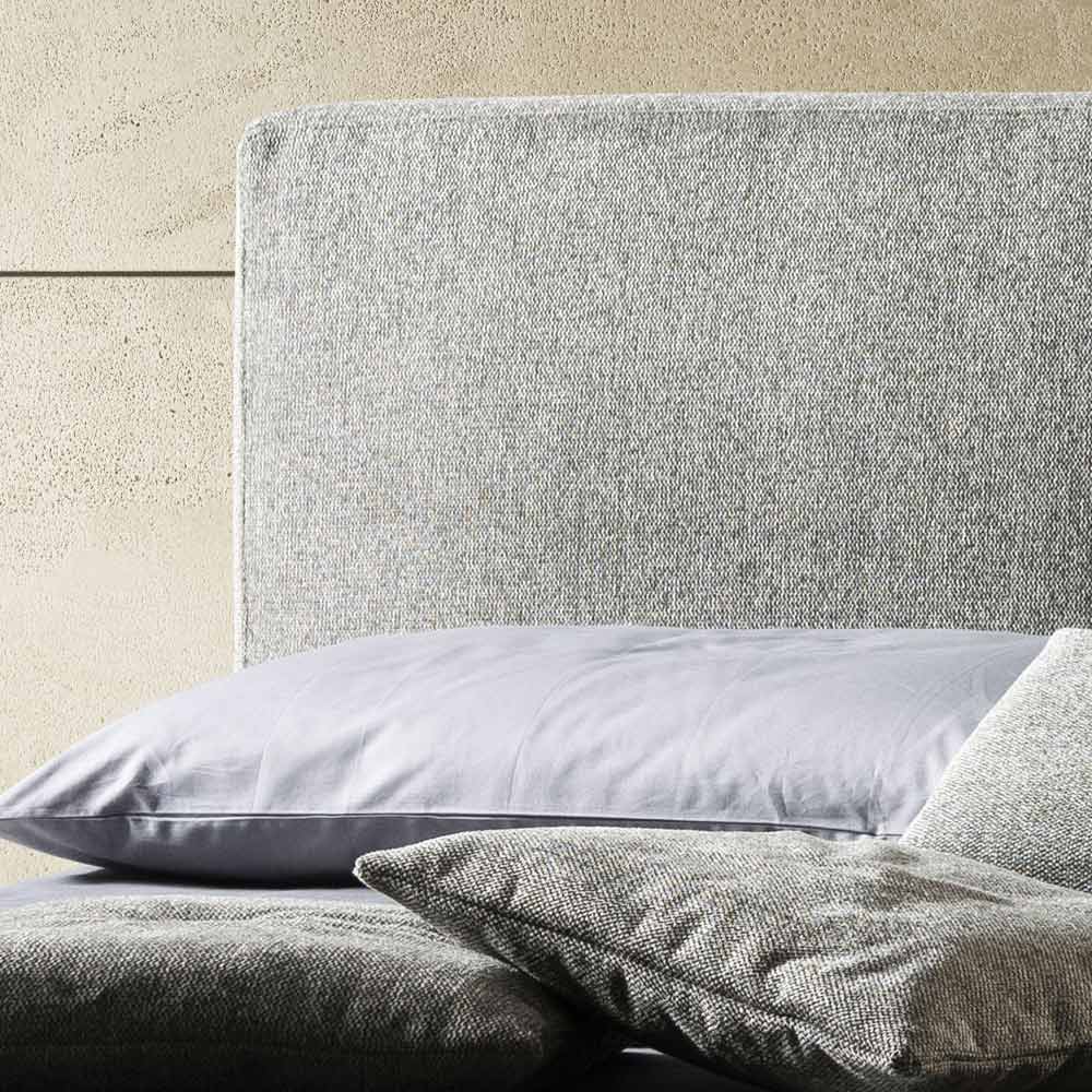 Cama de matrimonio fabricada íntegramente en Italia , con somier acolchado desenfundable y cabecero con revestimiento de tela o terciopelo,