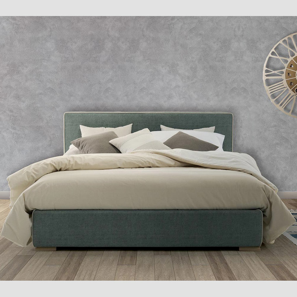 Cama doble en tela o cuero ecológico con contenedor hecho en Italia - Etoile