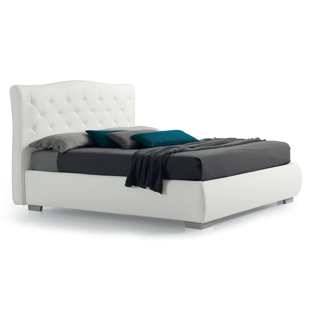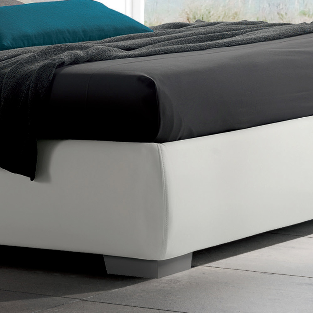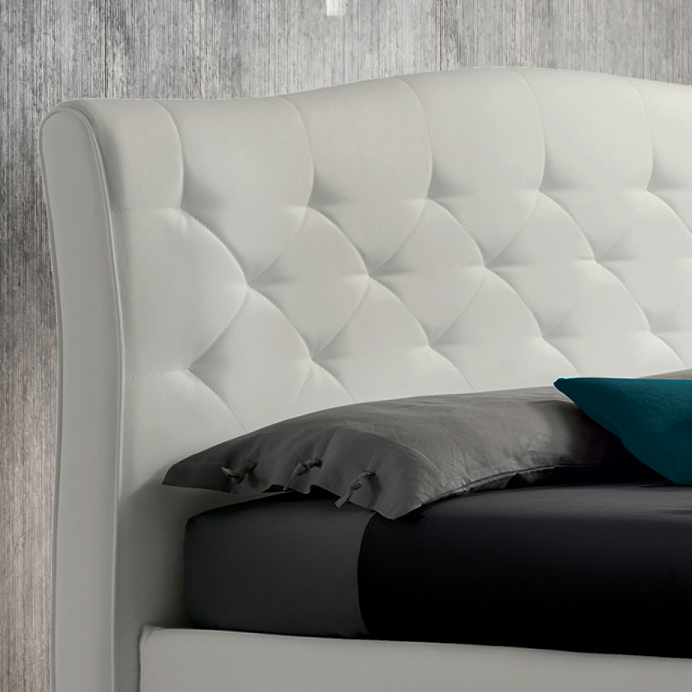 Cama de matrimonio con arcón contenedor y cabecero acolchado en ecopiel, fabricada en Italia.