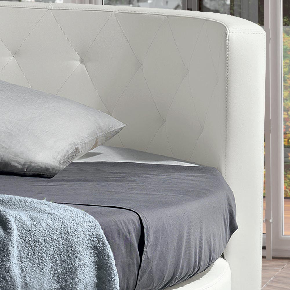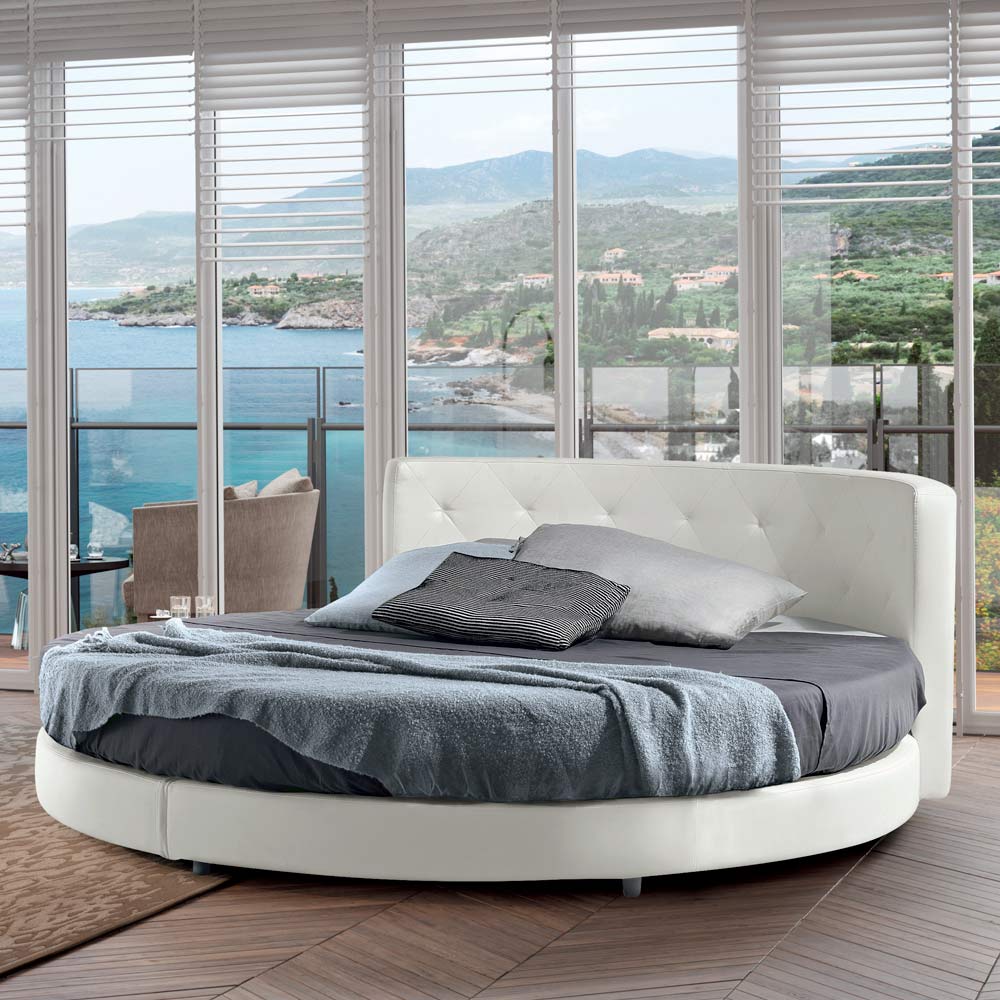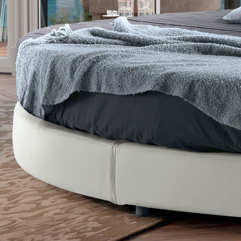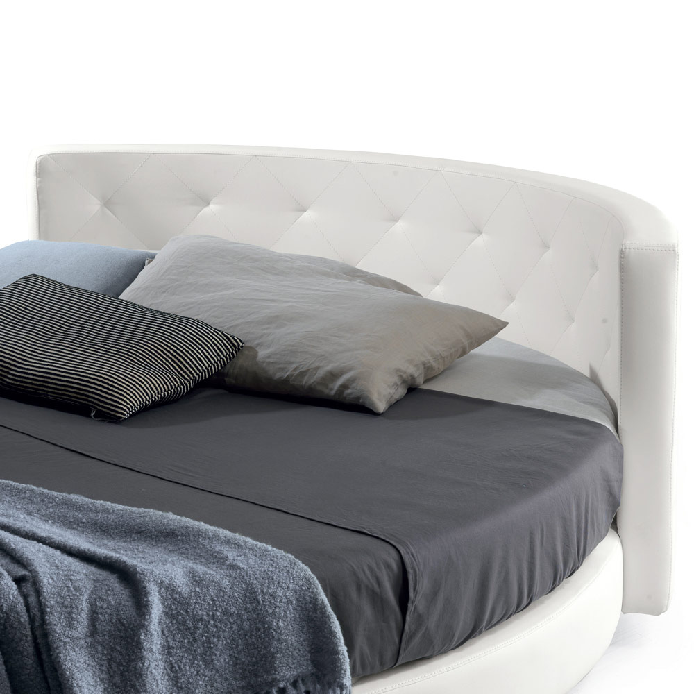 Cama de matrimonio redonda fabricada en Italia, acolchada y revestida en ecopiel.