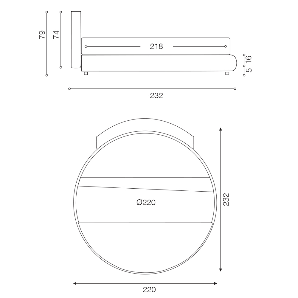 • Versión de 218 cm de diámetro con placa de poliuretano, H 18 cm