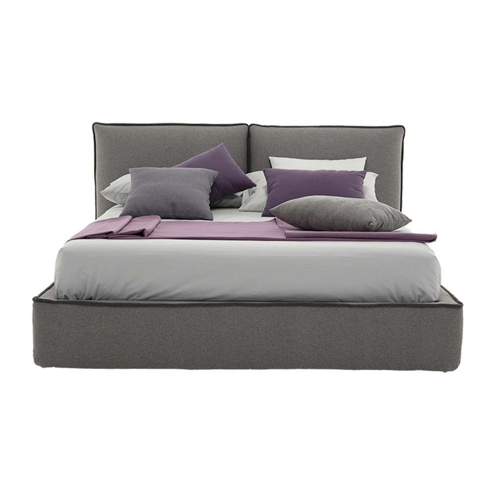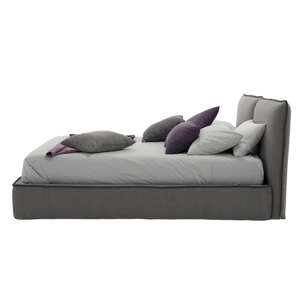 Cama doble de alta calidad tapizada en tela o ecopiel, hecha a mano en Italia con caja de almacenamiento.
