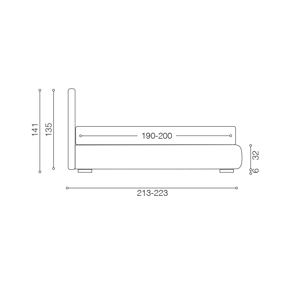 El marco de la cama, de 32 cm de altura, es fácilmente desenfundable (cabecero no desenfundable). Los pies son de madera y tienen una altura de 6 cm.