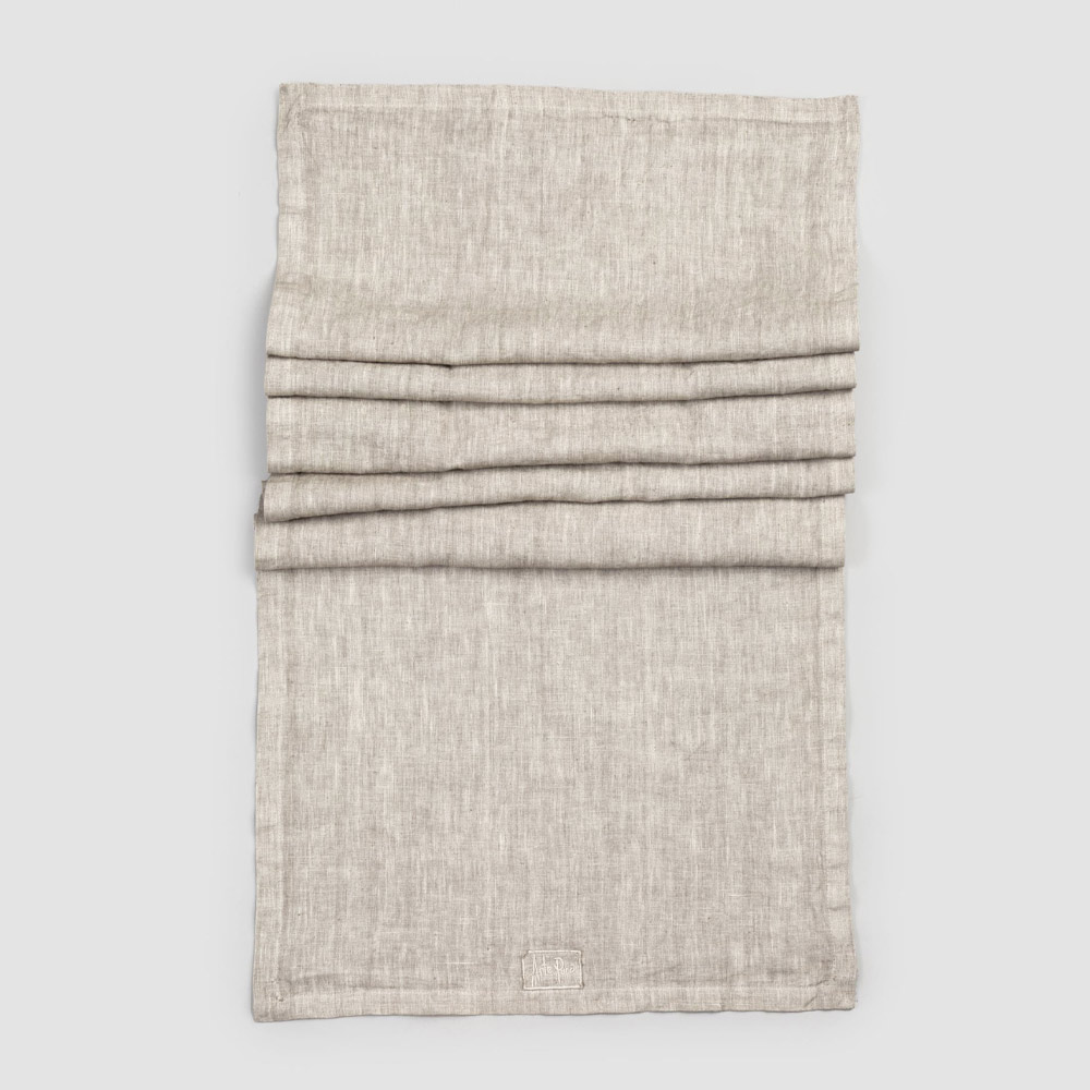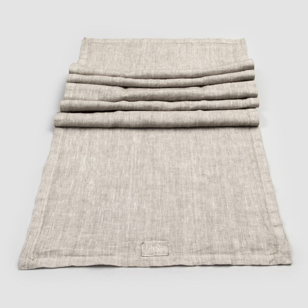 Camino de mesa en lino grueso y borde con elegante pliegue de diseño de lujo fabricado en Italia.