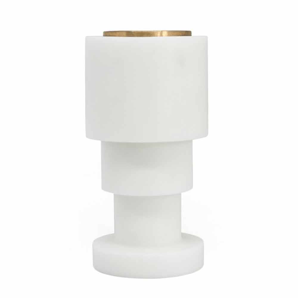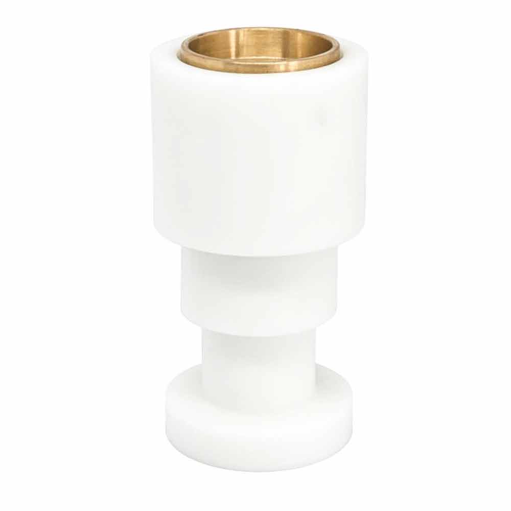 Portavelas bajo fabricado en mármol blanco de Carrara y latón de alta calidad. Es una pieza única ya que cada bloque de mármol utilizado se diferencia de los demás por vetas y matices. El mármol proviene de la cantera de Poggio Silvestre que es una fuente de mármol blanco de primera calidad clasificado desde el siglo pasado.