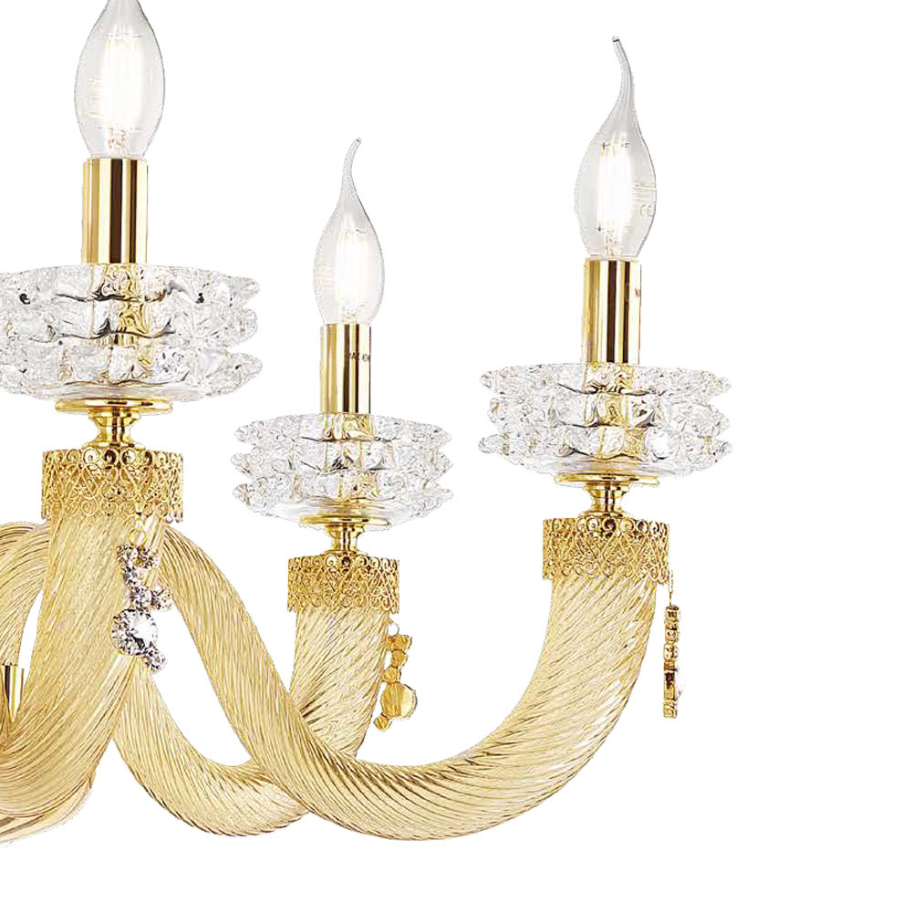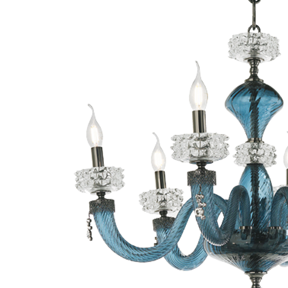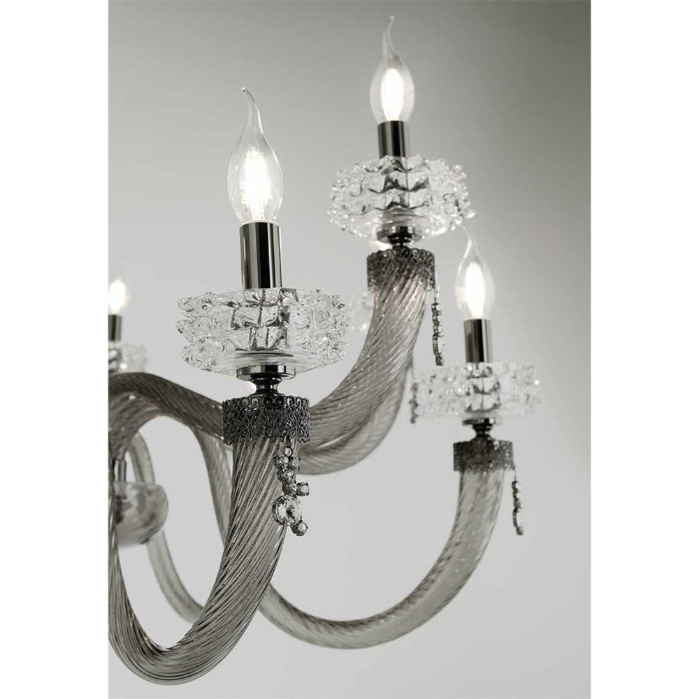 Araña de 6 luces en vidrio y metal hechos a mano, diseño de lujo italiano.
