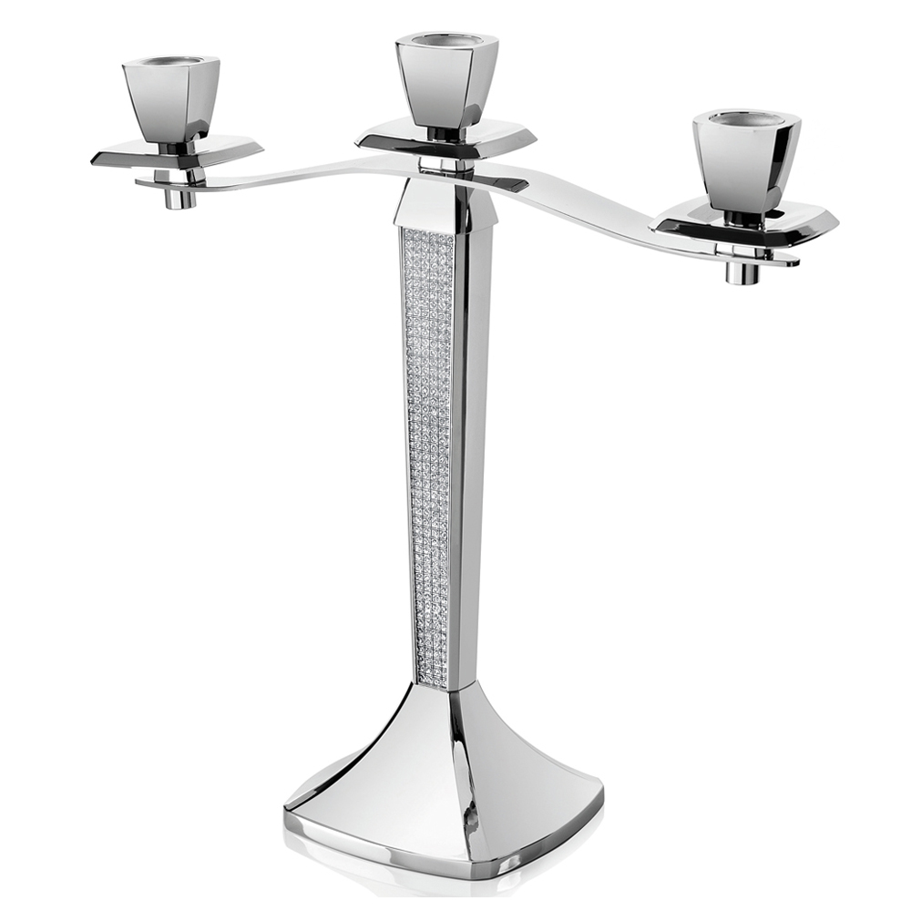 Este elegante y lujoso candelabro de3 llamas está realizado íntegramente en metal plateado adornado con adornos de purpurina que le dan un aspecto ilustre, distinguido y refinado.
